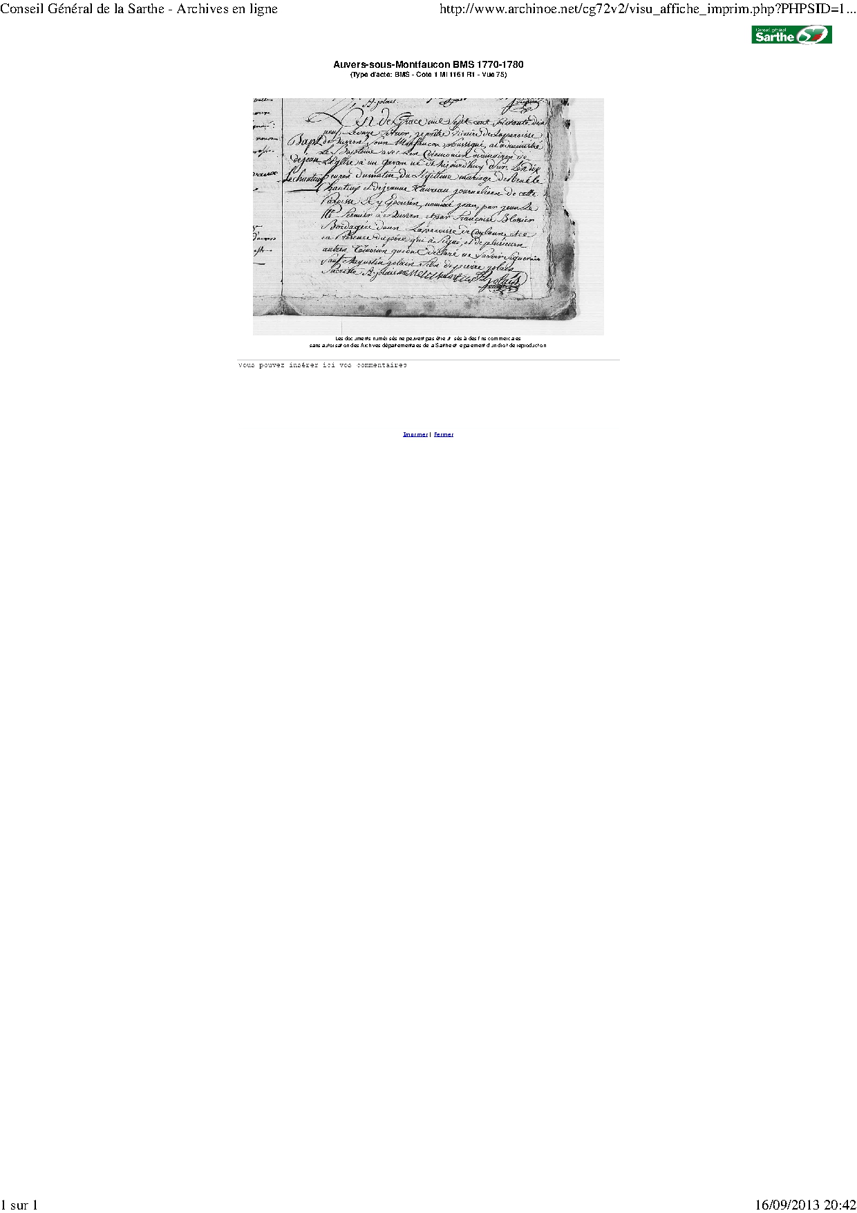 | Origine : | ad 72 Auvers sous Montfaucon |