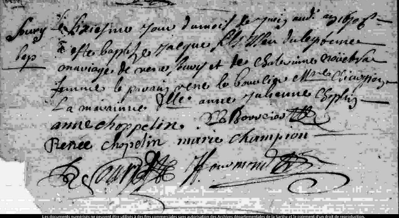Naissance : 24 décembre 1689 à Domfront-en-Champagne 72240