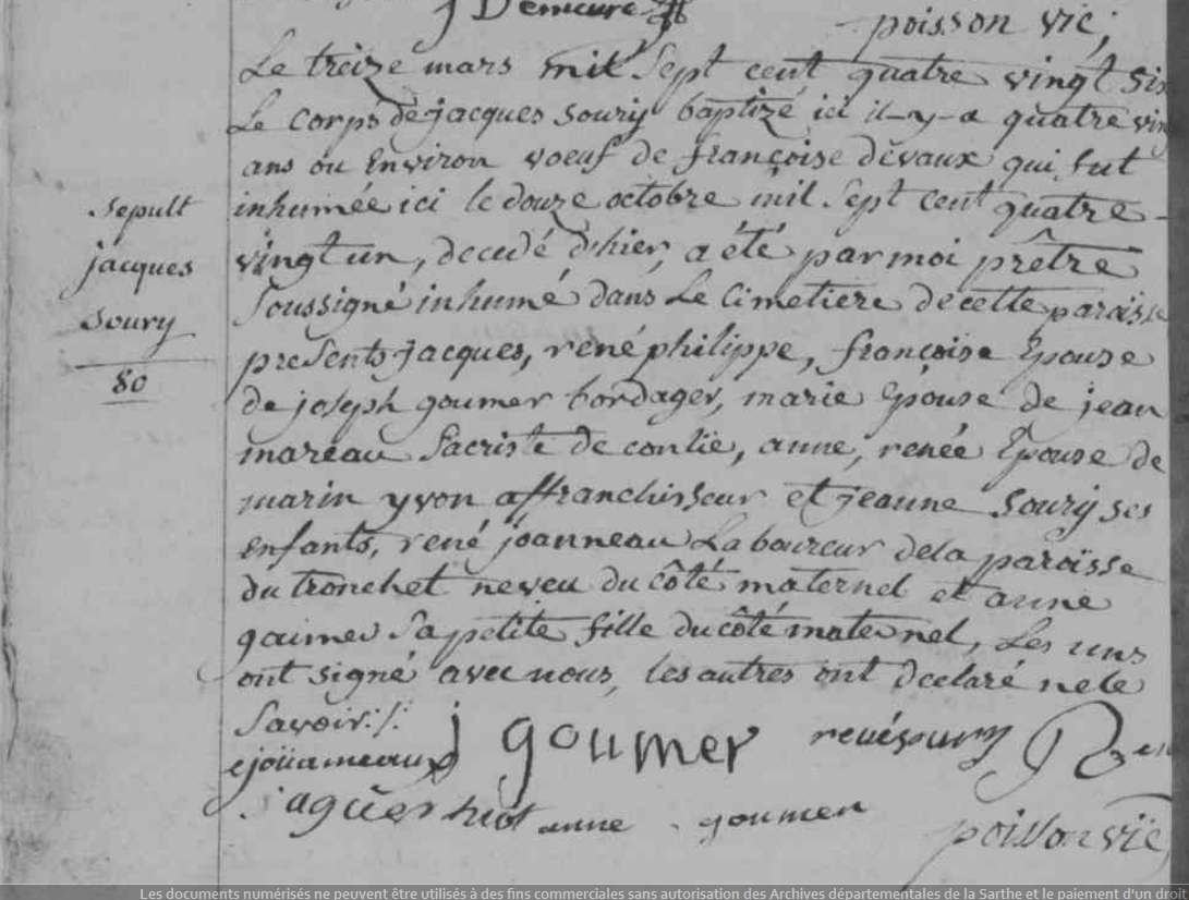 Décès : 13 mars 1786 à Domfront-en-Champagne 72240 ( Source )
