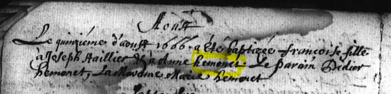 Enfants : TAILLY Anne ( 1664 - 1665 )