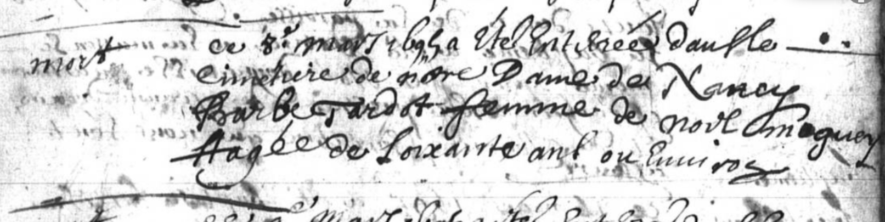 60 ans à son DCDécès : 8 mars 1695 à Nancy Notre Dame 54000 ( Source )