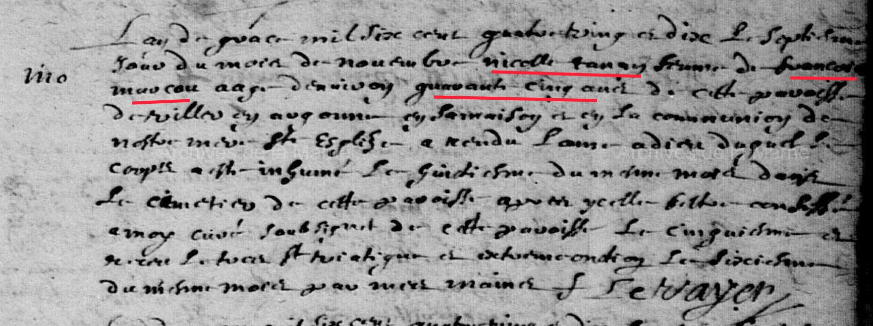 45 ans à son dcDécès : 7 novembre 1690 à Villers-en-Argonne 51800 ( Source )