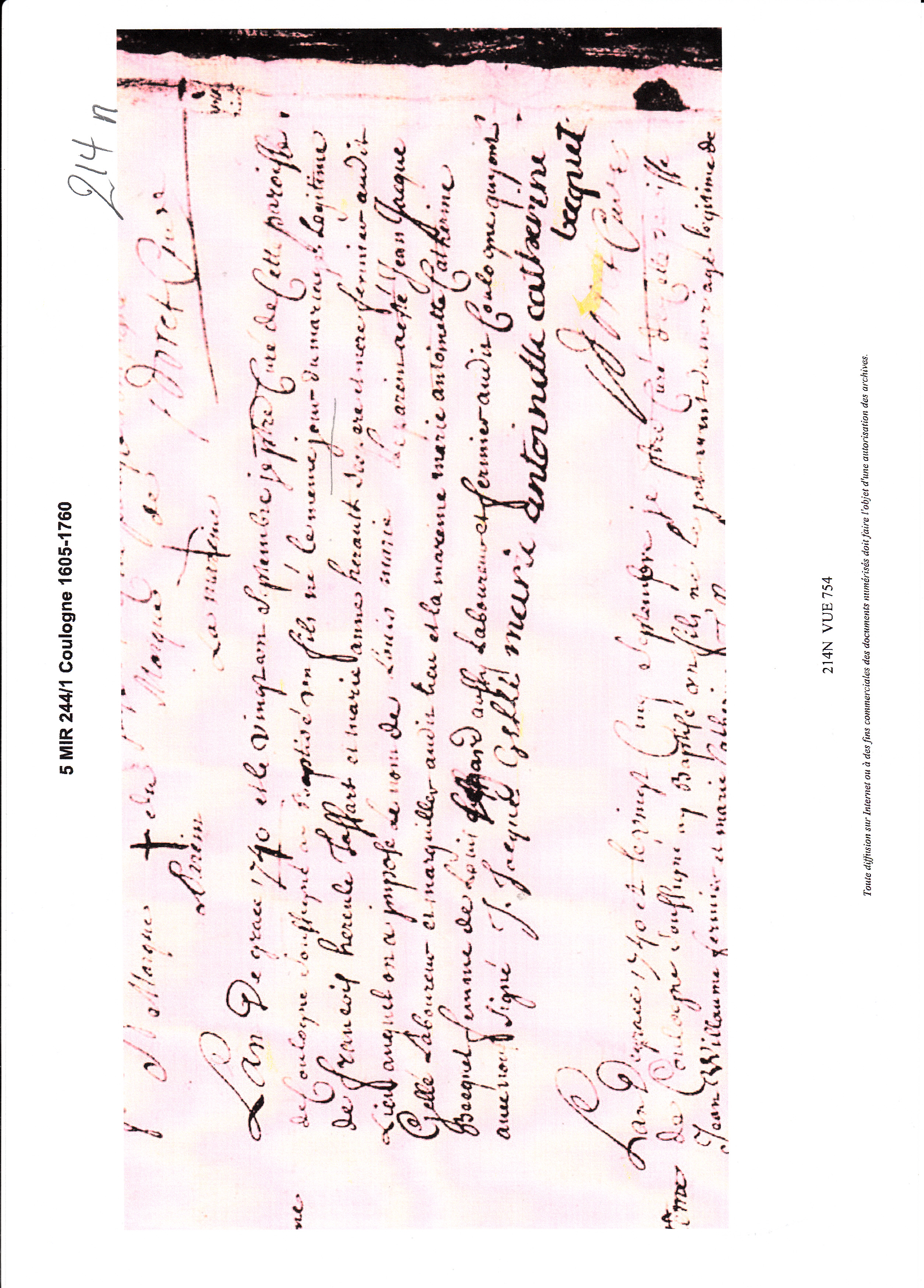 Mère : HERAULT Marie Anne ( 1710 - 1747 )