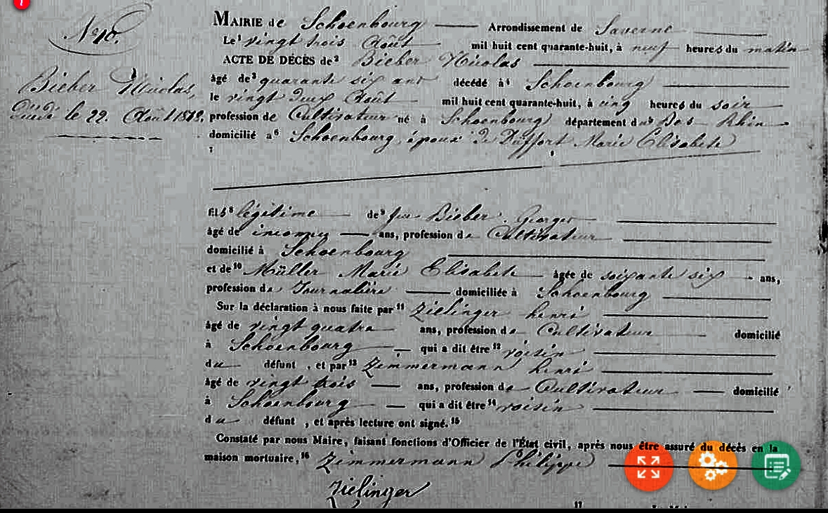 Décès : 22 août 1848 à Schoenbourg 67320 Alsace ( Source )