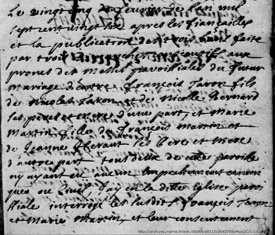 Mariage : 25 février 1726 à Moiremont 51 ( Source )