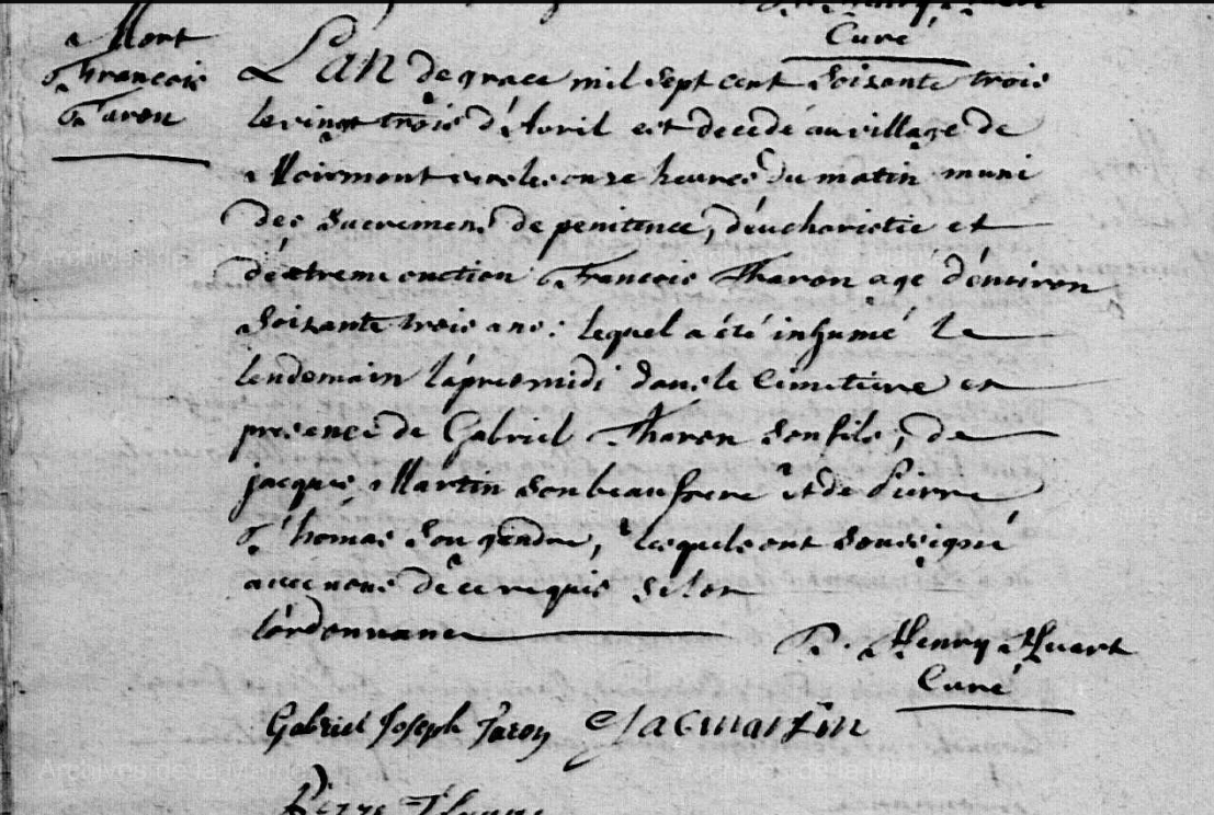 Témoin :THARON Gabriel Joseph ( 1727 - 1783 )
