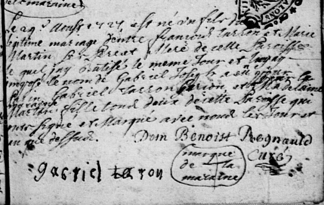 Père : THARON Gabriel Joseph ( 1727 - 1783 )