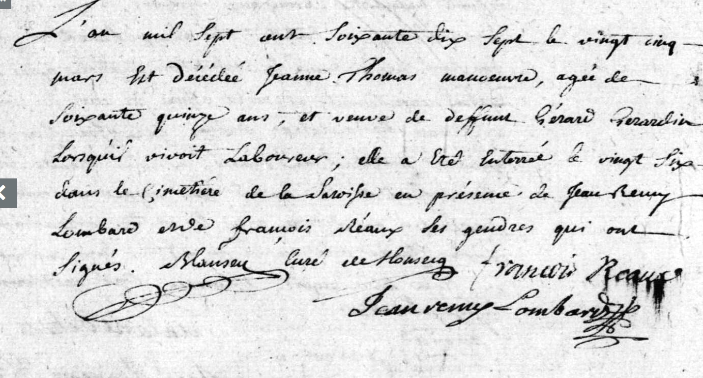 Enfants : GERARDIN Marguerite ( ~ 1733 - 1789 )