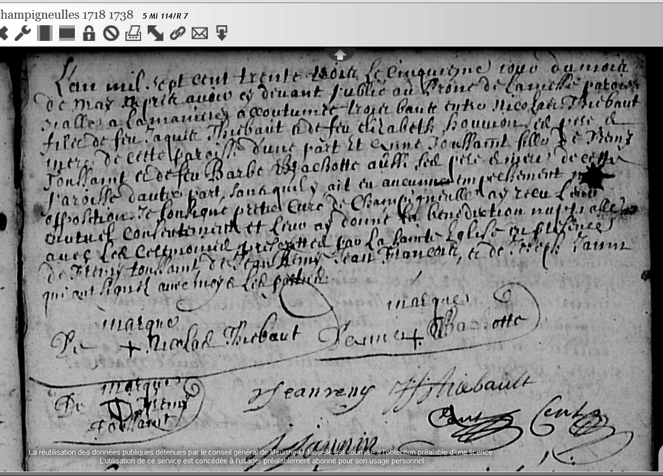 Mariage : 5 mai 1733 à Champigneulles 54 ( Source )