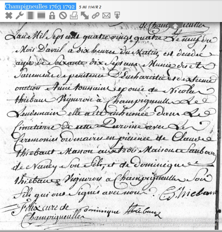 Pas Champigneulles entre 1700 et 1715Décès : 9 avril 1784 à Champigneulles 54 ( Source )