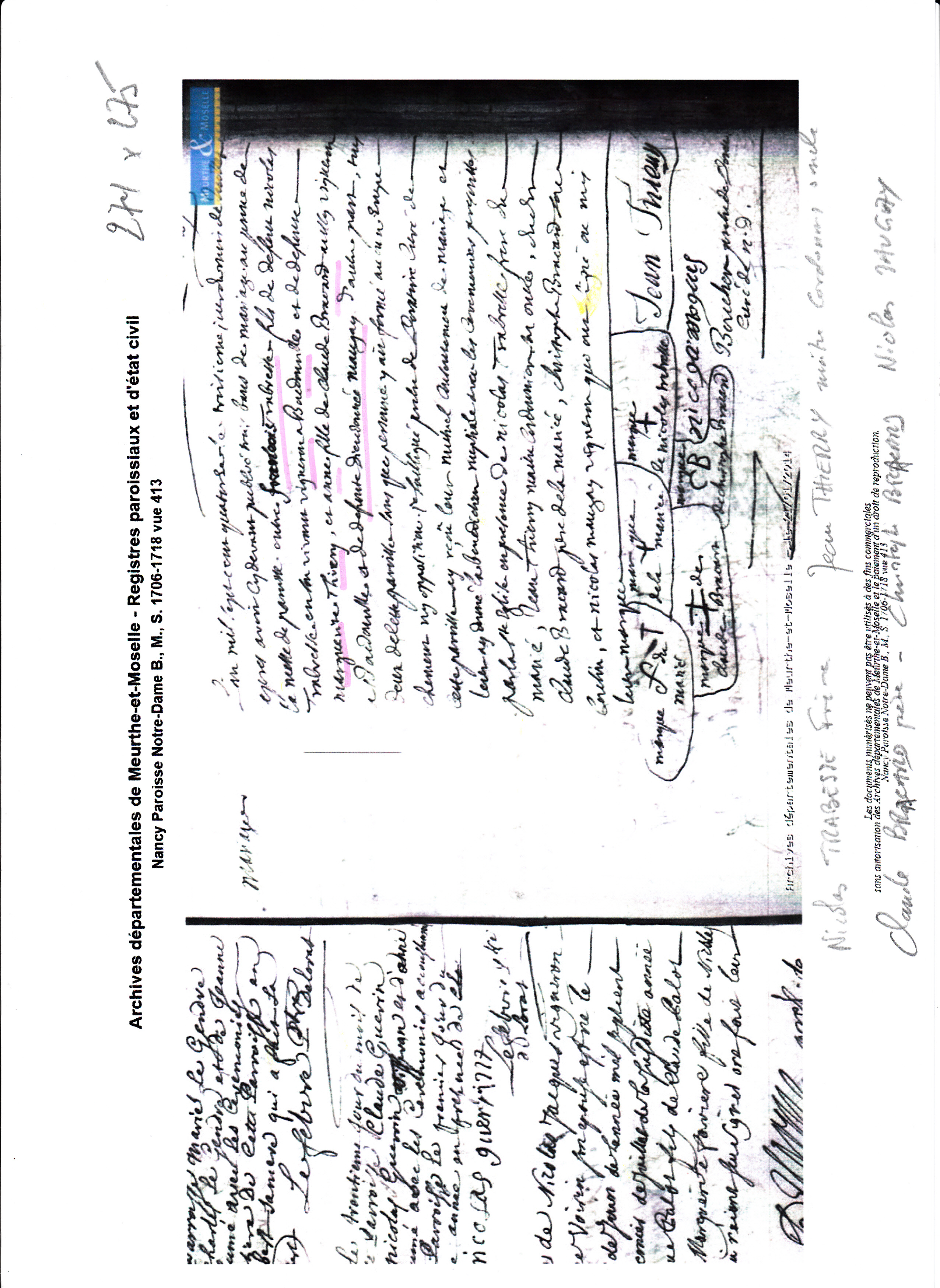 Fiançailles faites le 21 juin 1714 -"...entre francois fils de deffunct nicolas Trabrese en son vivant vigneron a boudonville,et de defuncte Marguerite Thiery et Anne fille de Claude Bracard aussy vigneron a boudonville et de deffunte Dieudonnée Maugay tous deux nos paroissiens.......en presence de Nicolas Trabresse frere du fiancé,Jean Thiery maistre cordonnier a boudonville son oncle,dudit Claude Bracard pere de la fiancée et de Christophe Bracard son cousin......."