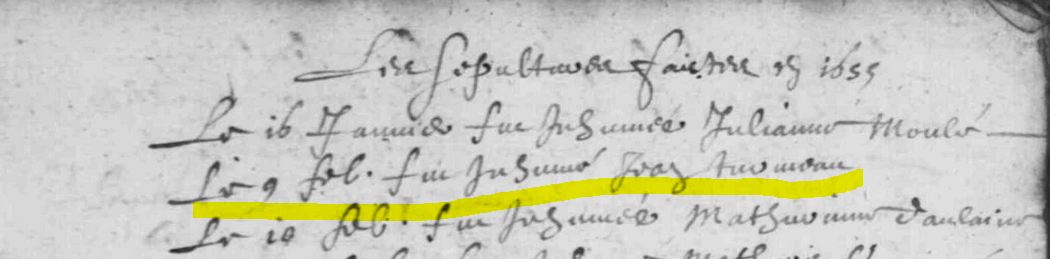 Décès : 15 septembre 1692 à Saint-Martin-de-Connée 53160 ( Source )