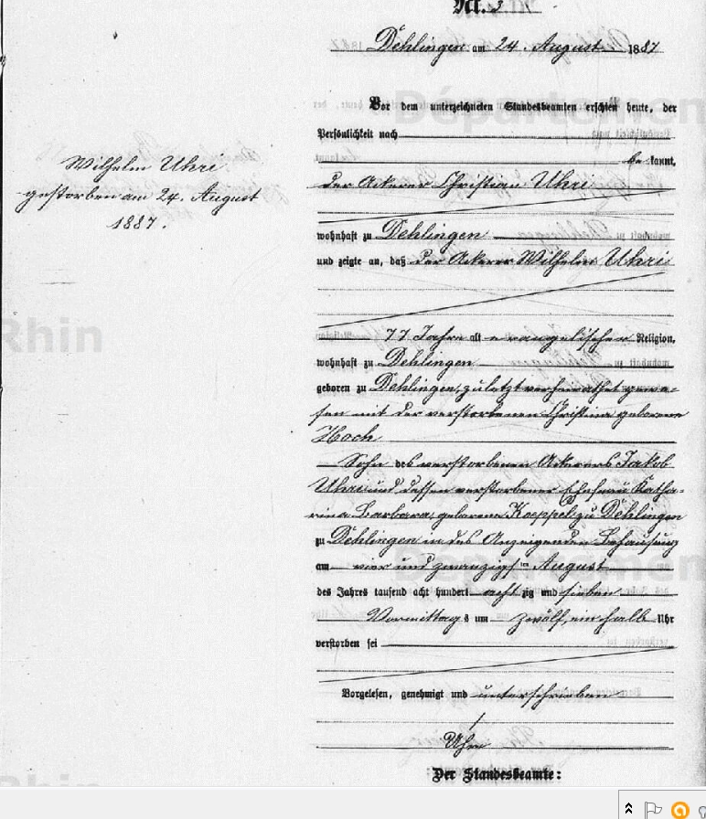 Décès : 24 août 1887 à Dehlingen 67430 Alsace ( Source )
