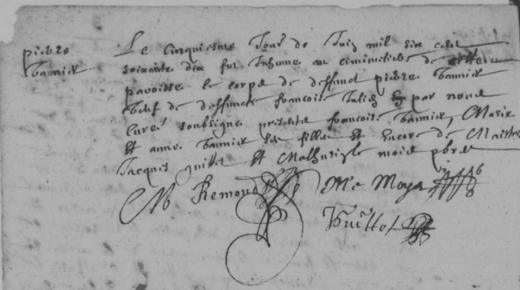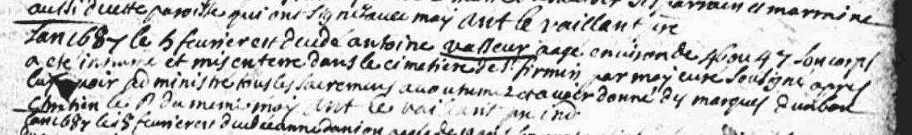 Aliaume le VASSEUR, laboureur à Questrecques. Le 13.01.1561 (Du Buir), Jean de Montewis, tisserand de toile à Questrecques, lui vend deux mesures de terres, pour 92 livres. Aliaume est encore cité le 06.10.1581 (Prudhomme) avec Jean, son fils aîné, aussi laboureur à Questrecques. Il décède peu après car, le 03.01.1582 (Prudhomme), sont mentionnés les héritiers d'Aliaume le Vasseur à Questrecques. Dont, II-1 Jean, fils aîné. En 1585 (Prudhomme), bail à rente par Jean Marlard, laboureur à Bergues, à Jean le Vasseur, fils de défunt Aliaume, d'une bande de terre près de la rivière de Questrecques, avec accord pour la construction d'un pont sur cette rivière. Il décède avant le 13.02.1596. II-2 François. Il décède avant le 13.02.1596, date à laquelle (Langlois) ses frères Nicolas, devenu l'aîné, et Jean le jeune se partagent son héritage. II-3 Nicolas. Laboureur à Questrecques. Il épouse vers 1565 Françoise BEAUVESTRE, veuve de Guillaume Maugis. Le 24.11.1565 est cité au terrier de Questrecques Nicolas le Vasseur, mari de la veuve de Guillaume Maugis : il baille rapport et dénombrement au nom de Suzanne et Judith Maugis, filles du dit Guillaume, pour des terres à Questrecques. Le 05.01.1575 (Fonds Le Cat), il est cité beau-père et ayant l'administration d'Antoinette Maugis fille et héritière de feu Guillaume. Judith épousera Antoine Testart. Antoinette se marie en 1580 avec Jean de Holuigues (T au cm, son beau-père Nicolas Vasseur et son frère Jacques Maugis), puis en 1584 avec Louis d'Escaut, écuyer; de ce second mariage est issu Jean d'Escaut, écuyer, sieur de la Carnoye, qui assiste comme cousin germain aux cm de Jean et de Suzanne d'Enquin, enfants de Philipotte Vasseur. Dont, III-1 Philipotte. Elle se marie avec Louis d'ENQUIN, écuyer, sieur d'Enquin. Ils vivaient à Montreuil en 1611, à Preures en 1624. Dont, IV-1 Jean d'Enquin, écuyer, sieur d'Enquin et de Bellepâture, lieutenant de cavalerie sous le baron de Courset. Il se marie par cm du 05.11.1637 (Ins) avec Jacqueline du Wicquet, fille de Gabriel, sieur de la Creuse, et de Jacqueline duBuir. A l'occasion de ce mariage, Philipotte le Vasseur donne à son fils les immeubles qu'elle possède au hameau de Bergues à Questrecques. D'autre part il possède, lui venant de son père, 90 mesures de terres à Preures (T au cm, pour lui, sa mère, veuve, Suzanne d'Enquin, sa soeur, Jean d'Escault, sieur d'Escaut et de la Carnoye, son cousin germain du côté maternel). Il décède en 1640. IV-2 Marie d'Enquin. Elle épouse par cm du 06.01.1632 (Poterye) Antoine Verdière, de Samer, fils d'André et de Marguerite Leprêtre. IV-3 Antoinette d'Enquin. Elle décède à Bourthes, fille âgée, le 03.07.1668 (T, Antoine Vasseur, de Questrecques, vivant de son bien, et Jean Dupré, de Bourthes, ses beaux-frères). IV-4 Suzanne d'Enquin, née vers 1606. Elle se marie à Wirwignes le 02.05.1658, après cm (Le Vasseur), du 23.12.1657, avec son cousin Antoine Vasseur, fils de Hiérosme et de Marguerite Montewis (T pour elle, Antoinette d'Enquin, sasoeur, Jean d'Escaut, son cousin, et Marguerite de Contenant sa femme). Elle décède le 08.10.1676 à Wirwignes, âgée de 70 ans. IV-5 Jacques d'Enquin, né le 07.08.1611 à Montreuil (p, Jacques Gérard, m, Catherine d'Enquin). IV-6 Madeleine d'Enquin, épouse de Jean Dupré, de Bourthes. II-4 Jean, époux de Péronne Follie.