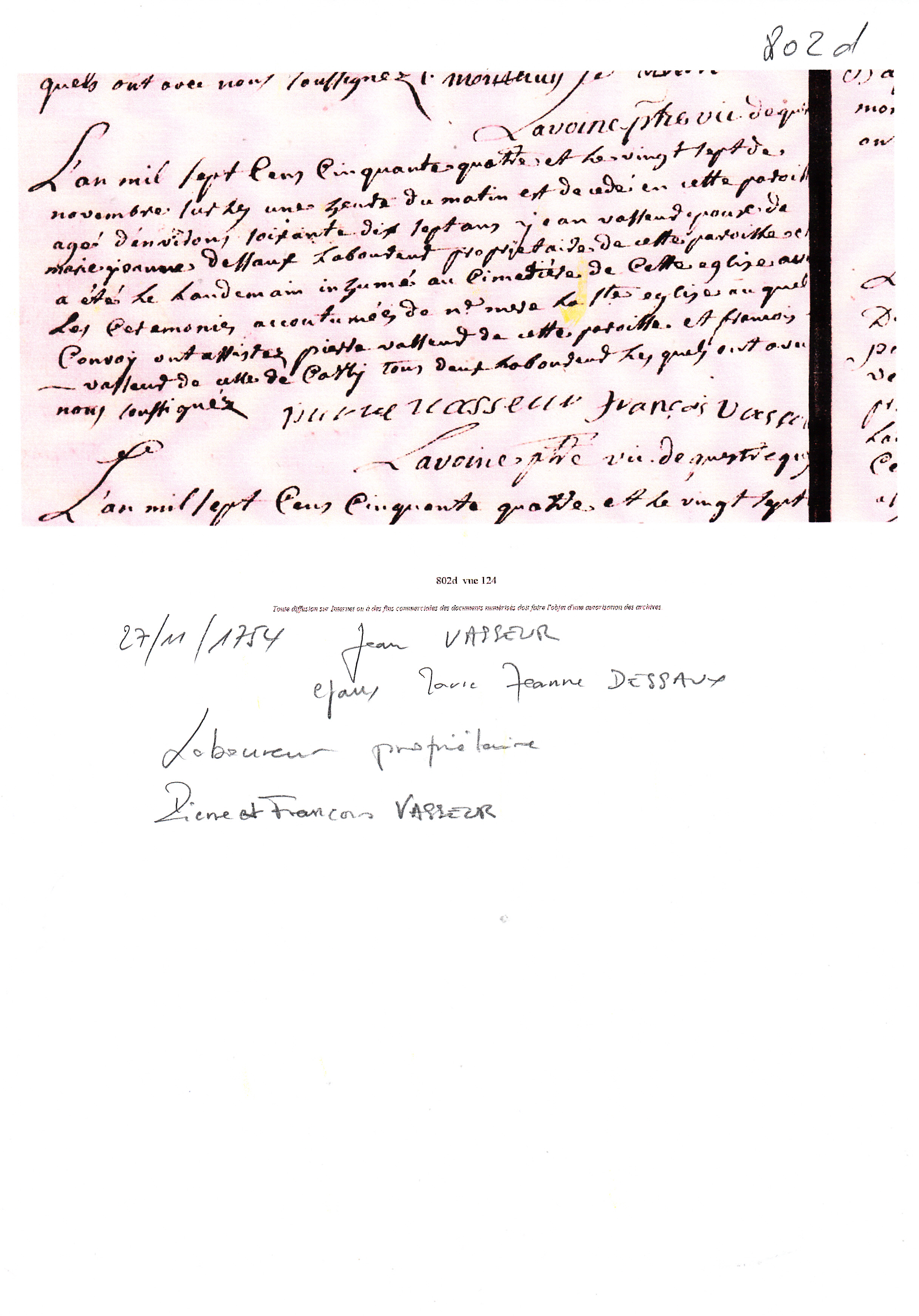 Témoins :VASSEUR François ( ? - ? )