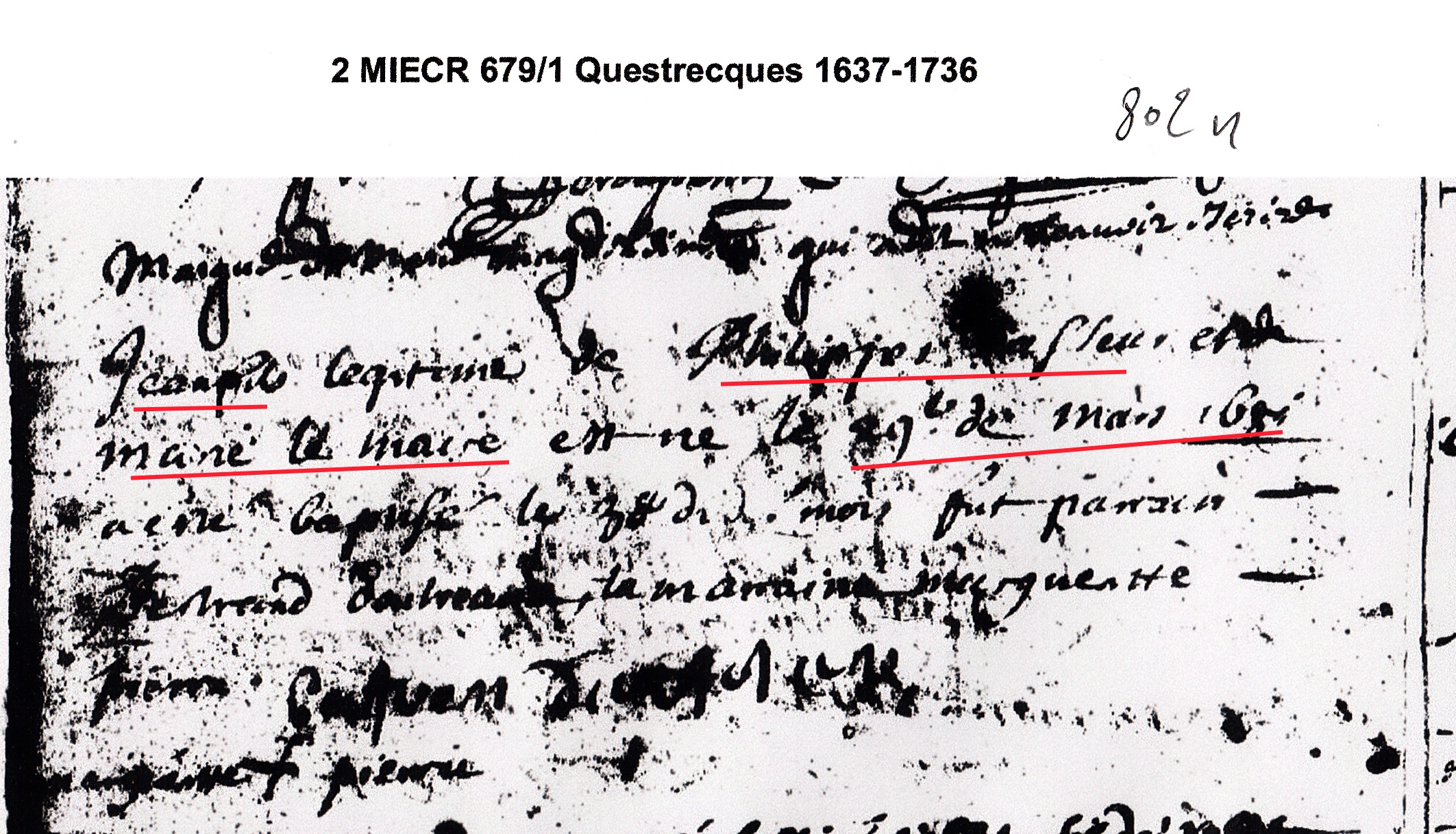 Naissance : 29 mars 1681 à Questrecques 62830 ( Source )