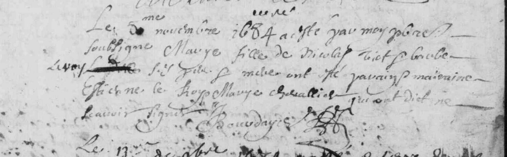Naissance : 4 février 1607 à Parné-sur-Roc 53260 Décès : 6 janvier 1668 à Parné-sur-Roc 53260