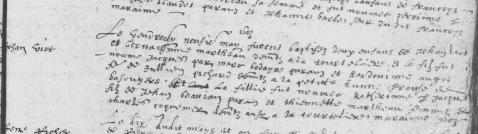 Père : VIOT Jehan ( 1576 - > 1607 )