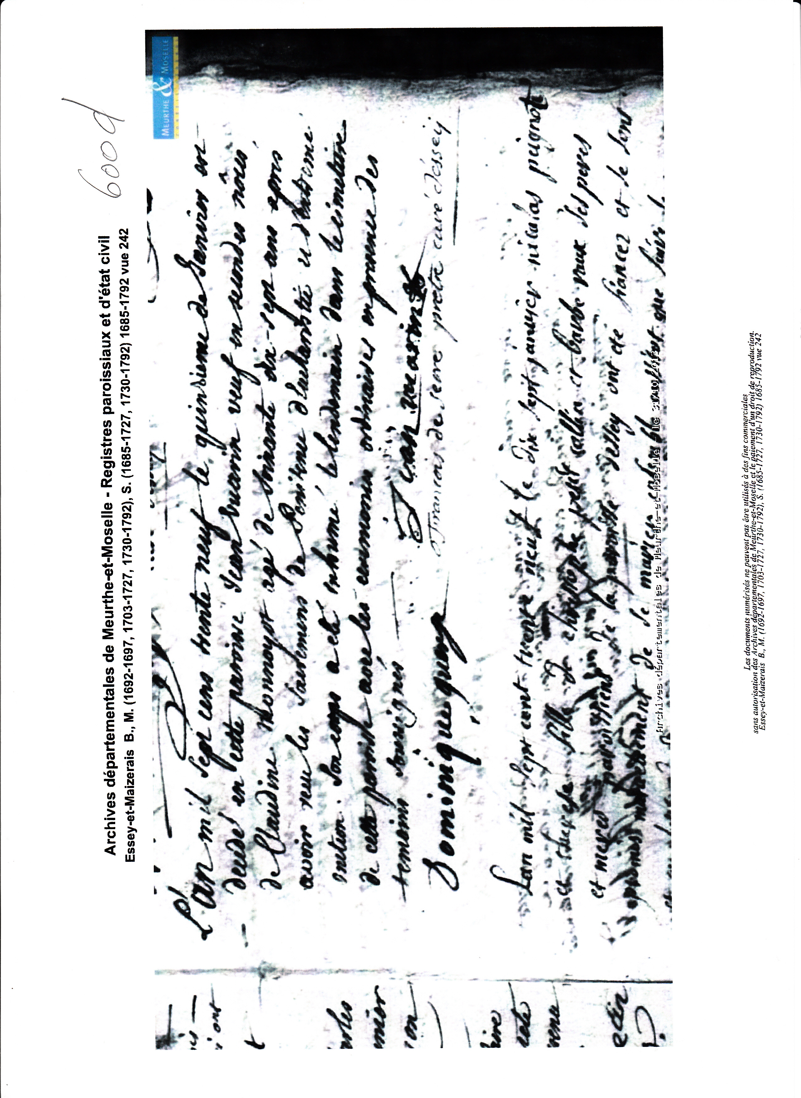 Mariage : 27 janvier 1722 à Essey et Maizerais 54470
