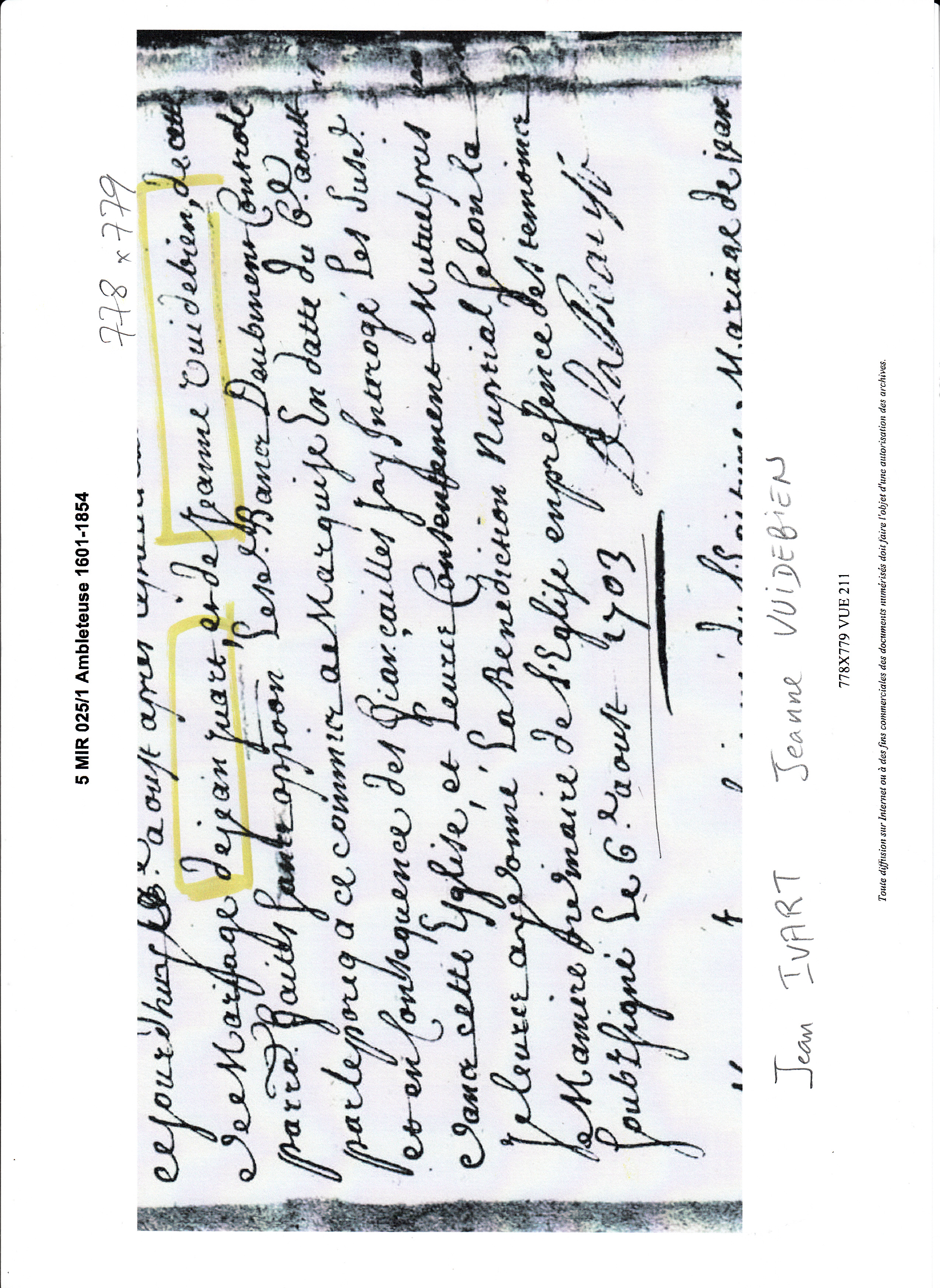 Mariage : 6 août 1703 à Ambleteuse 62164 ( Source )