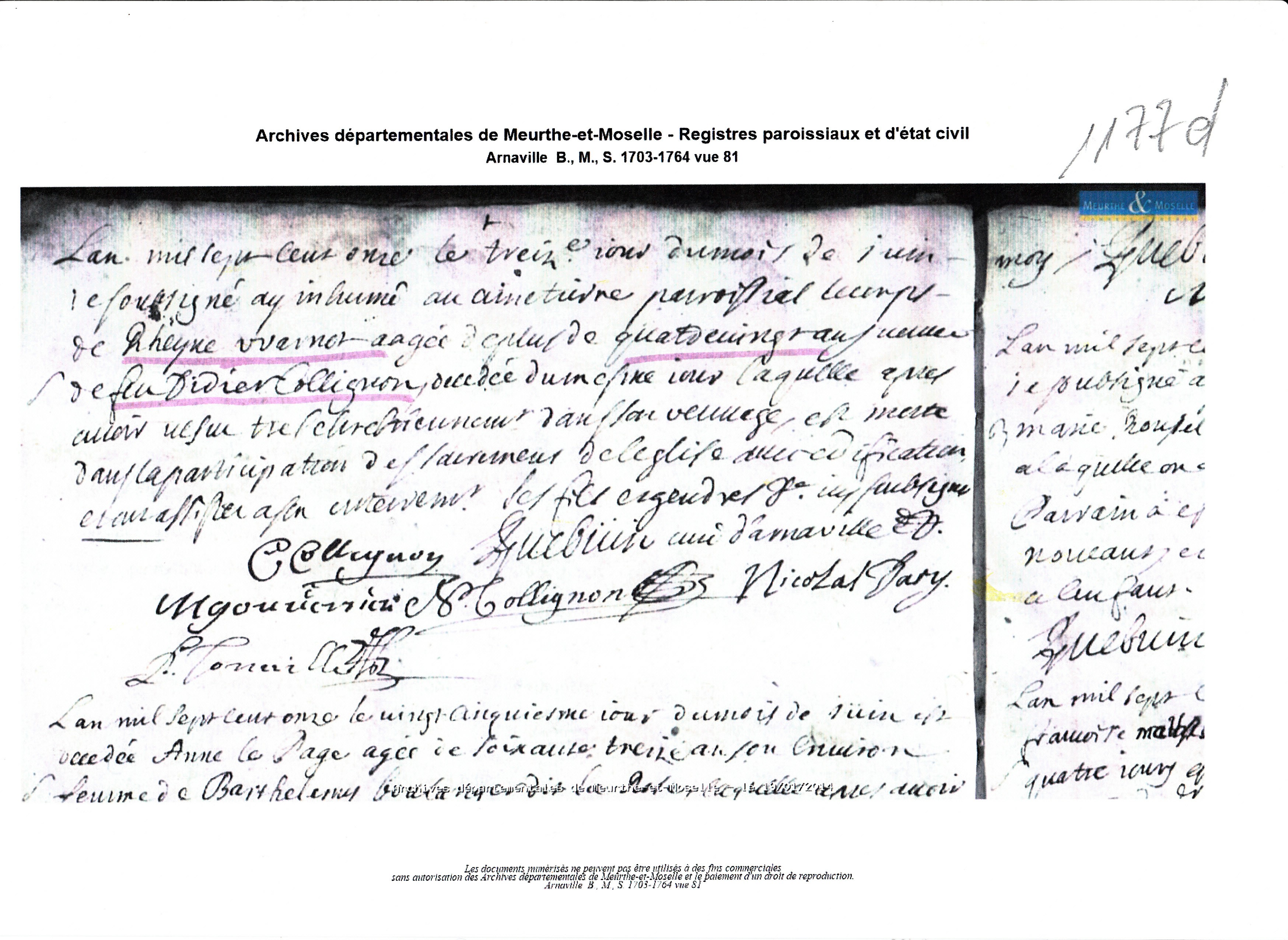 Naissance : vers 1630 à Arnaville 54530 Décès : 13 juin 1711 à Arnaville 54530 ( Source )