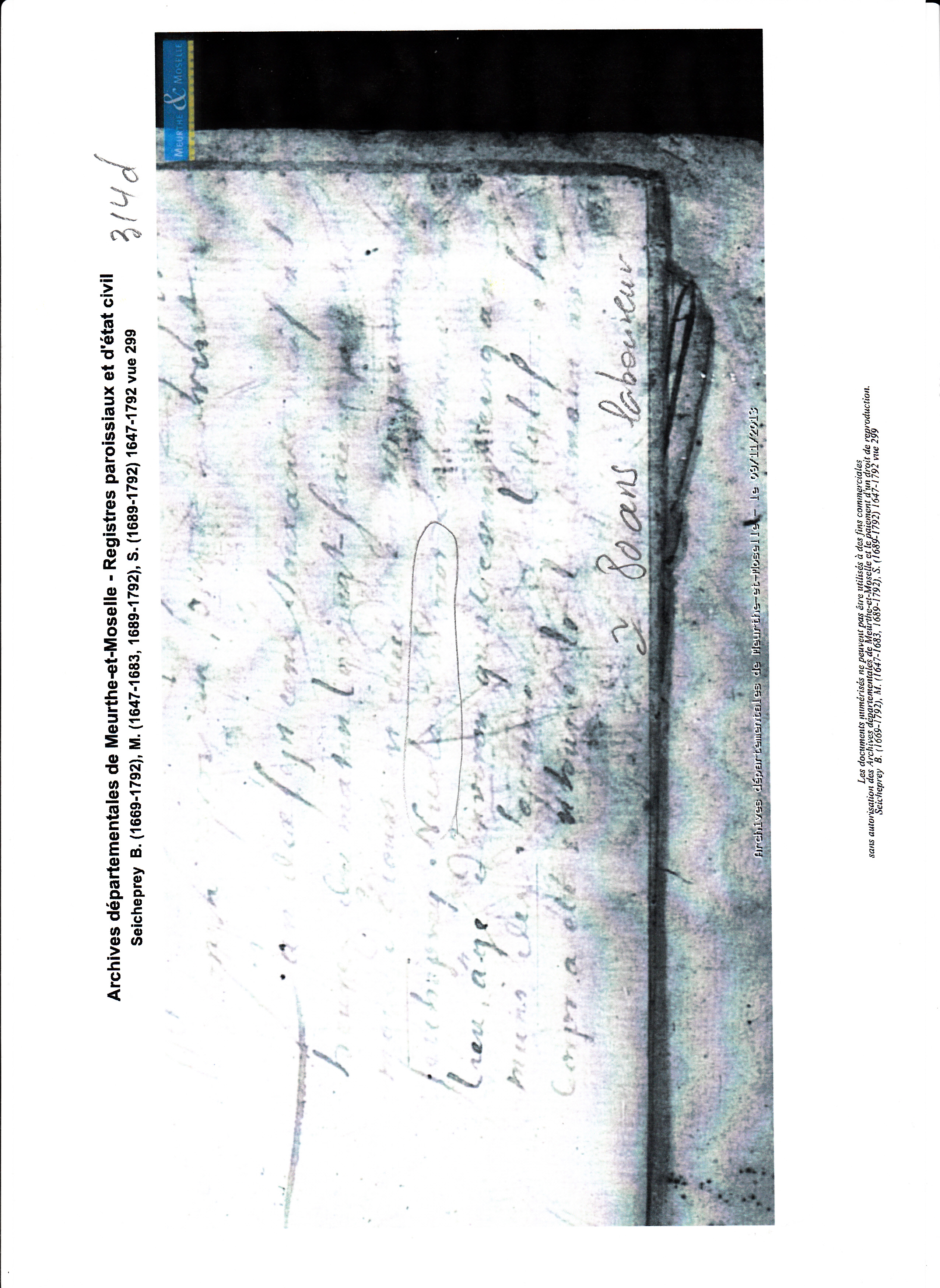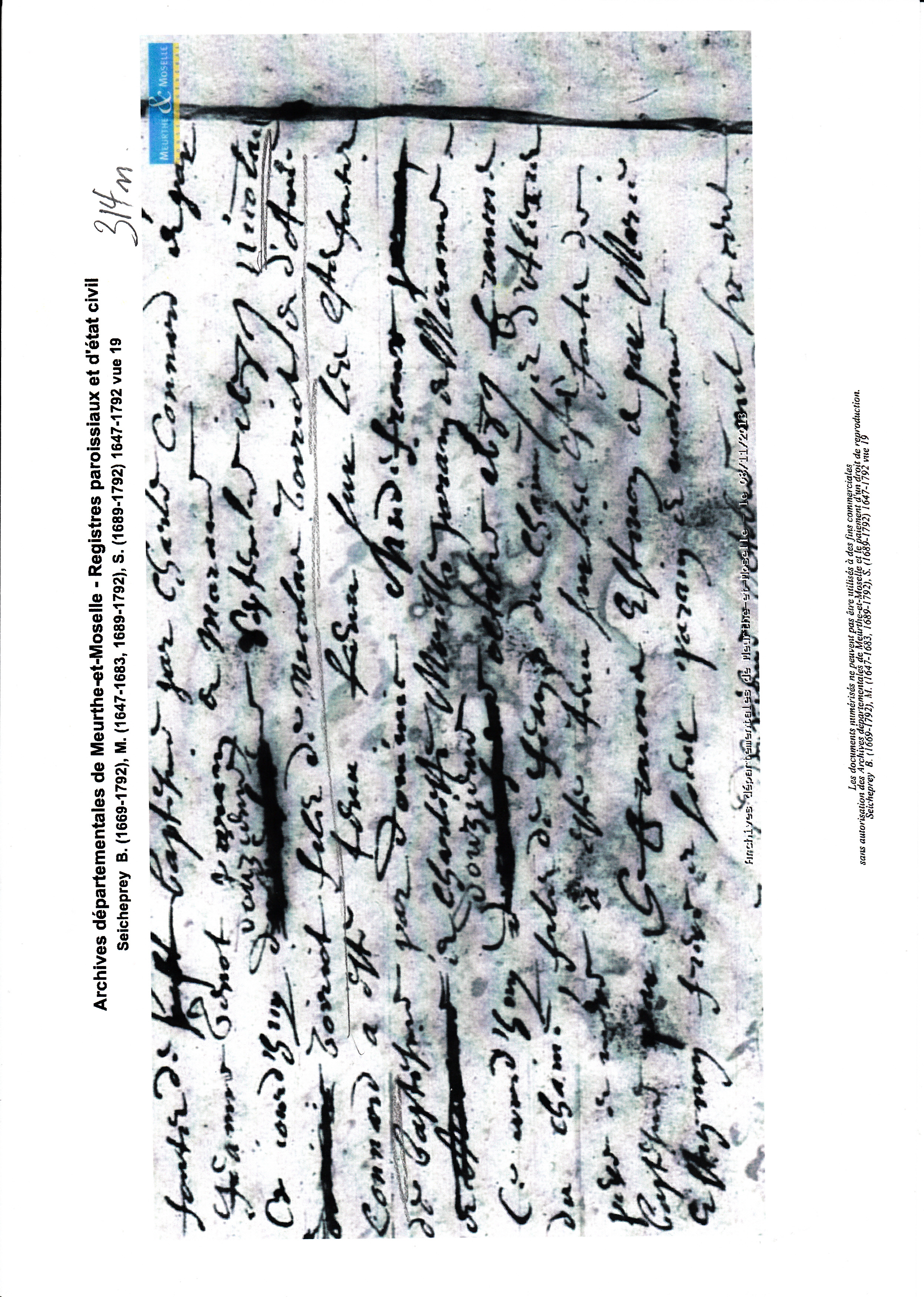 Naissance : 15 décembre 1692 à Seicheprey 54470 Décès : 15 décembre 1692 à Seicheprey 54470
