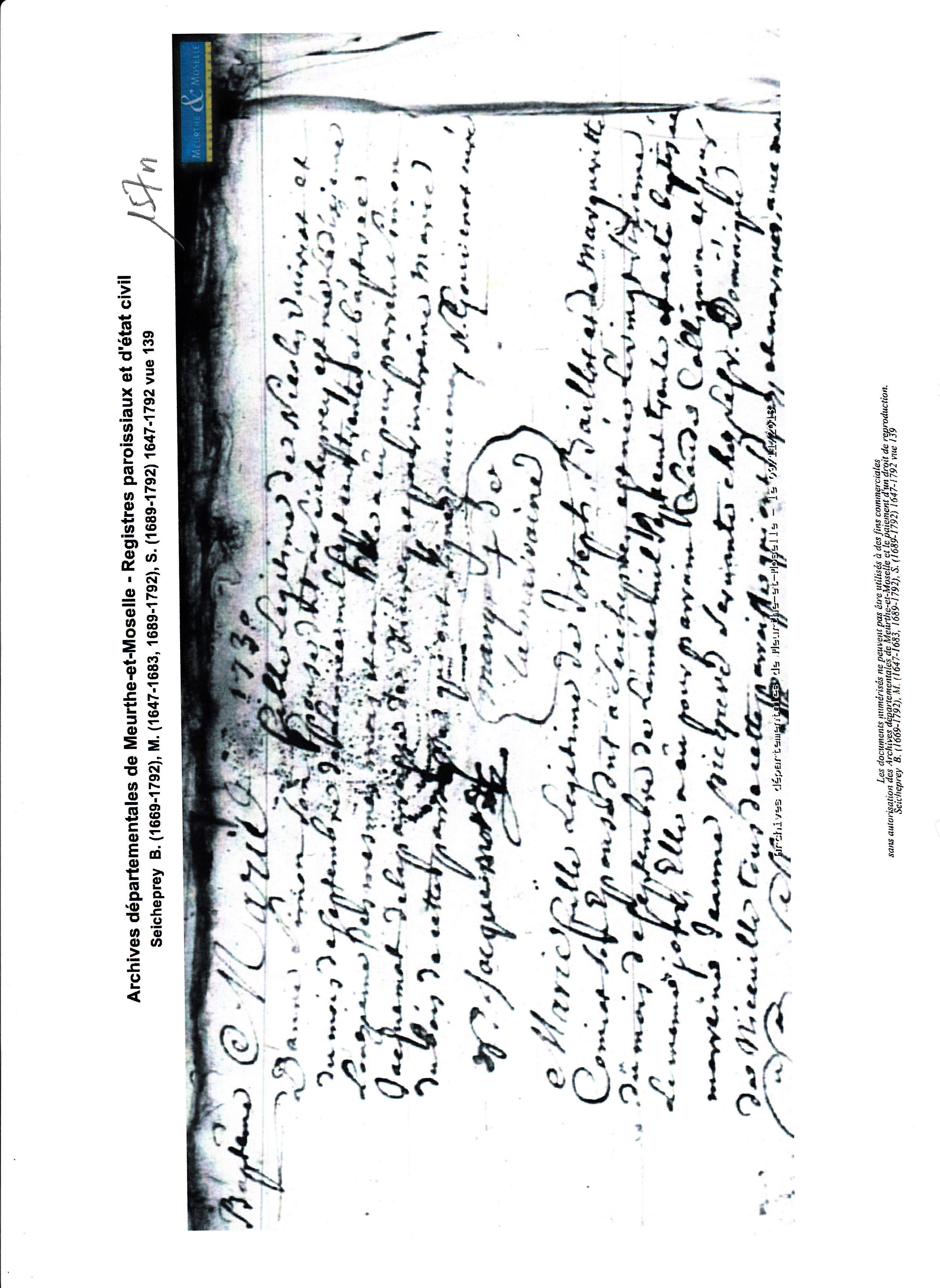 Naissance : 1er janvier 1690 à Seicheprey 54470