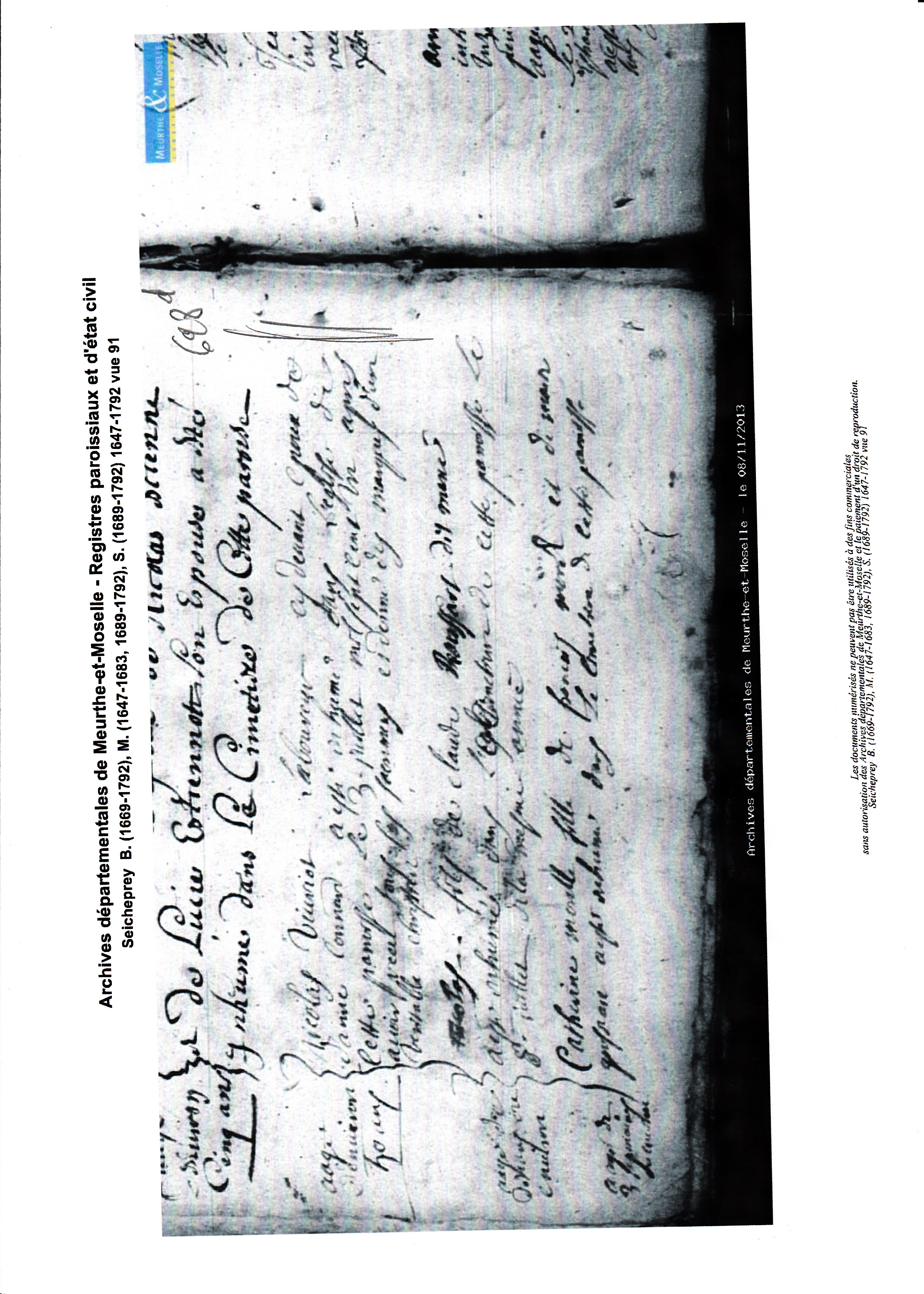 Naissance : 23 octobre 1677 à Seicheprey 54470