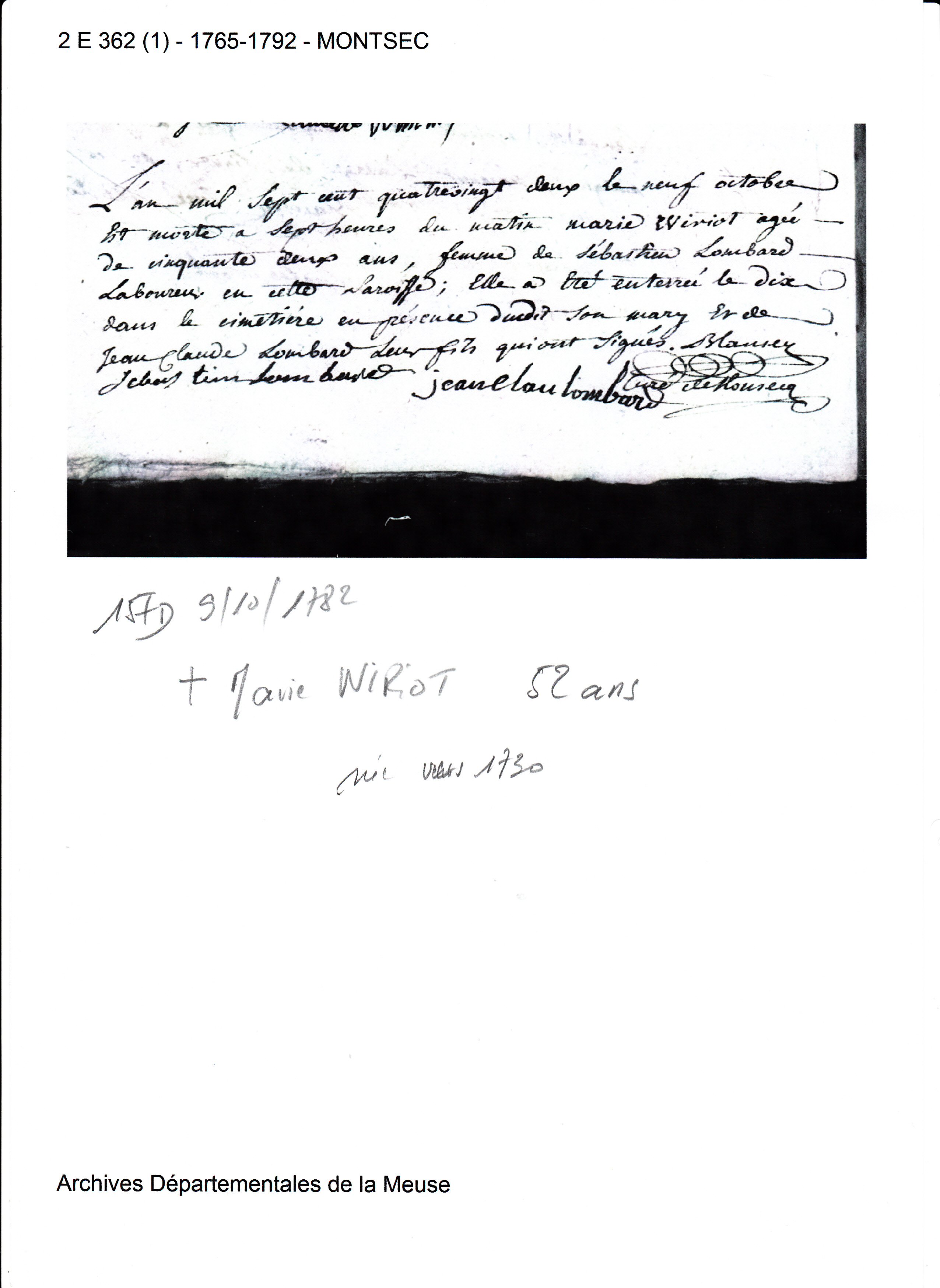 Décès : 9 octobre 1782 à Montsec 55300 ( Source )