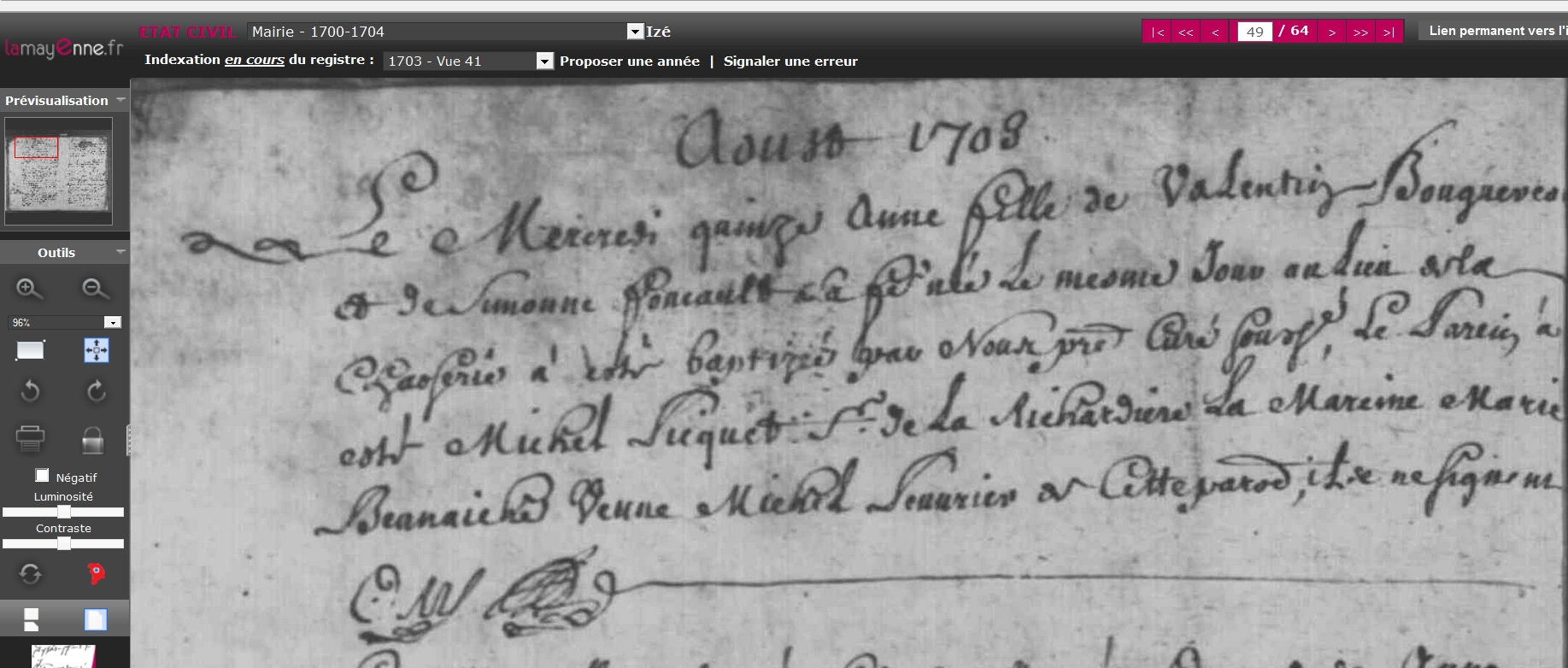 Naissance : 15 août 1703 à Izé 53160 ( Source )