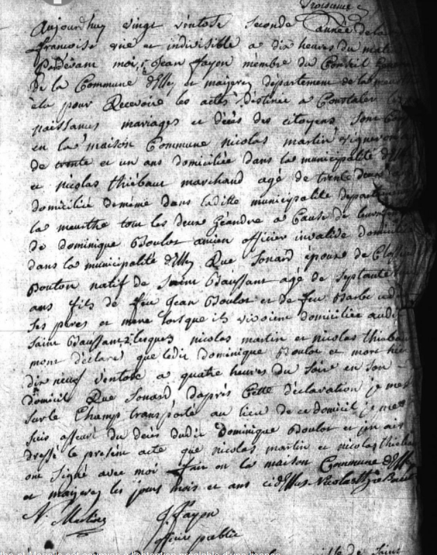 témoin du dc de son gendre François SIMONET le 8/11//1792