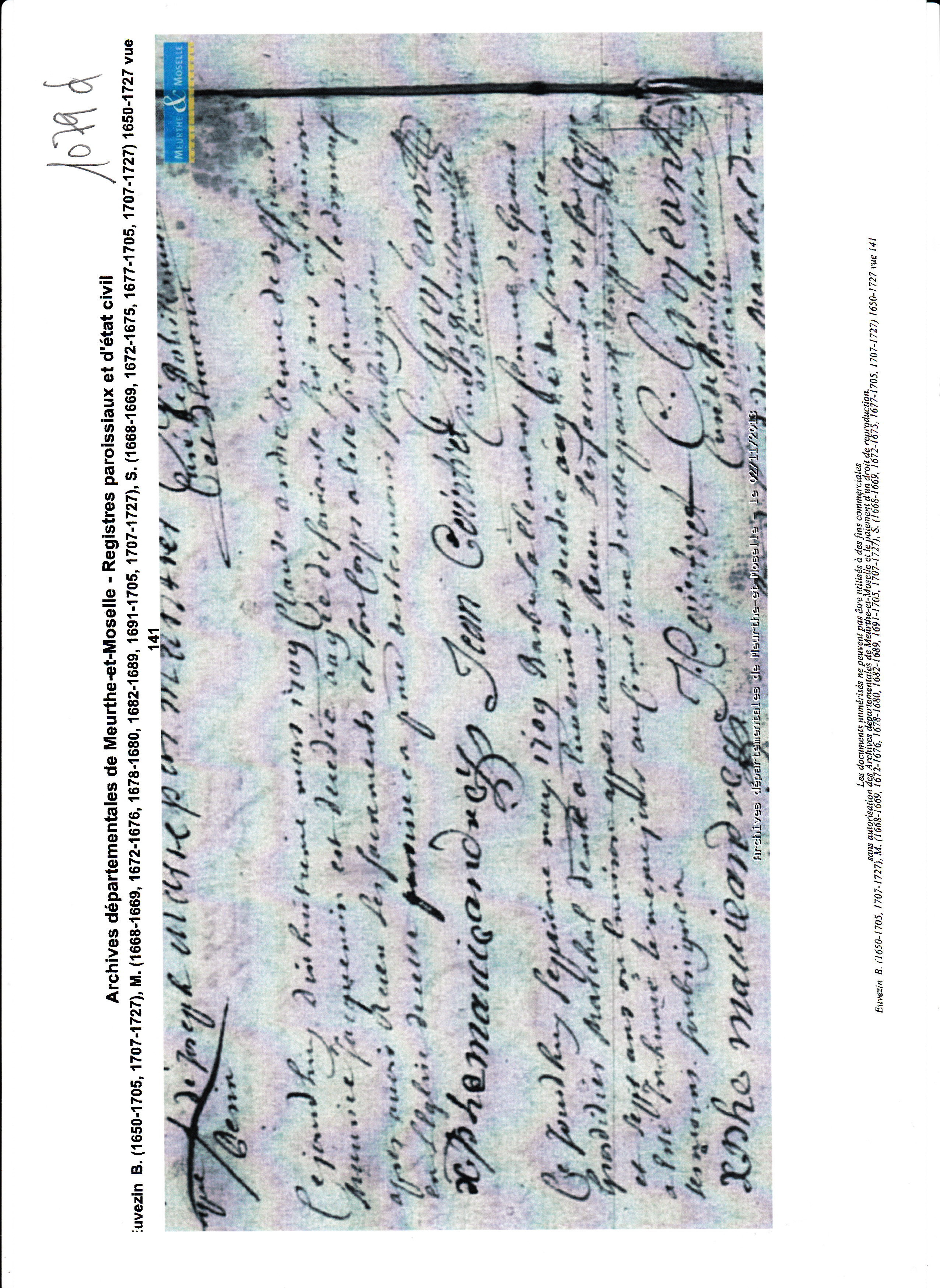Naissance : 1640 à Euvezin 54470 Décès : 18 mars 1709 à Euvezin 54470 ( Source )