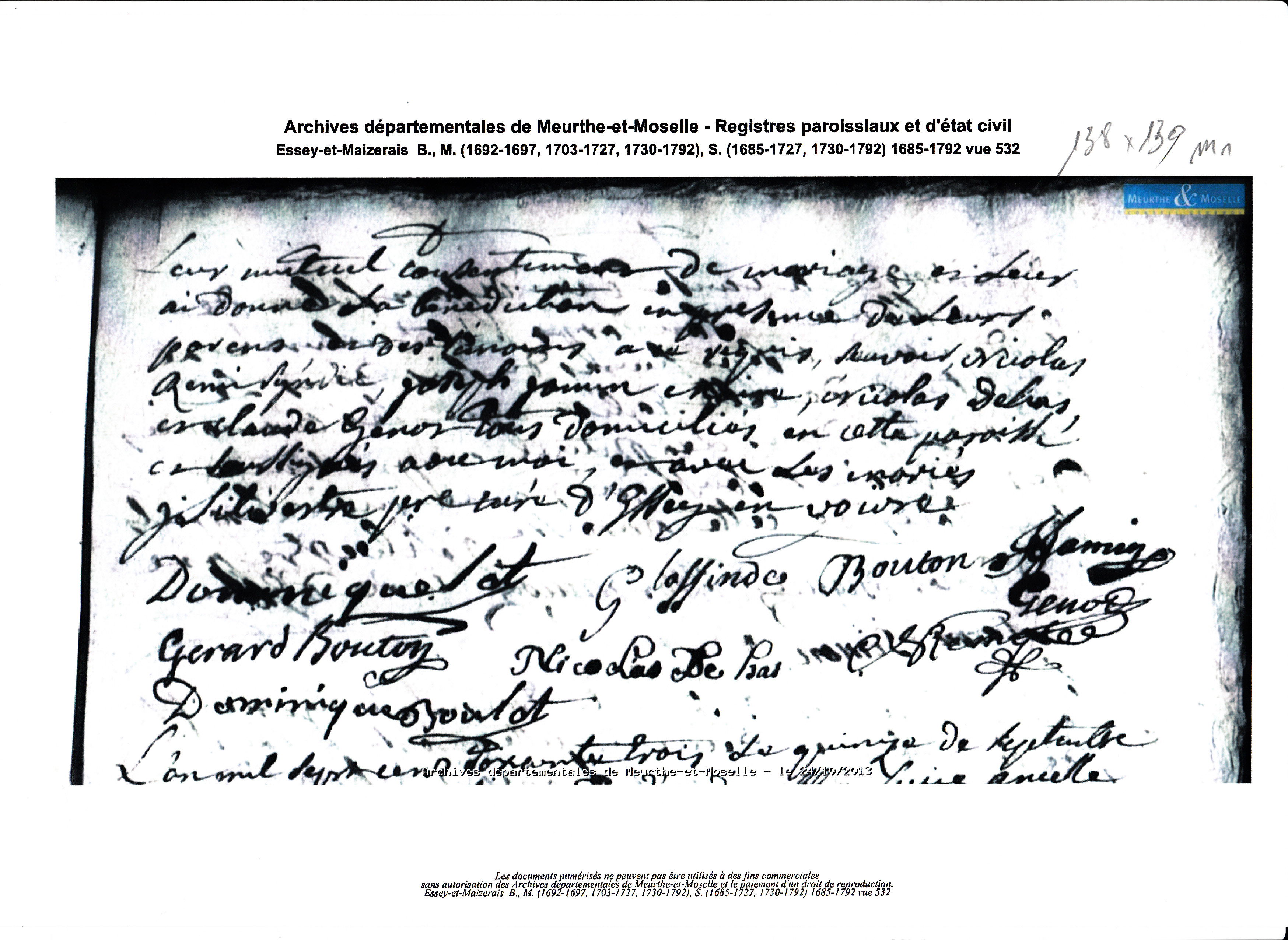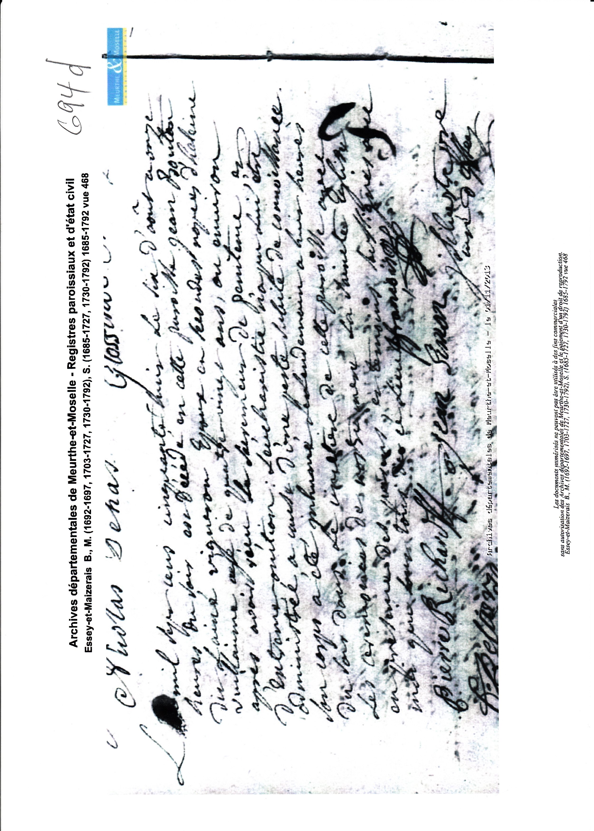 Naissance : vers 1680 à Essey et Maizerais 54470 Décès : 25 mars 1757 à Seicheprey 54470 ( Source )