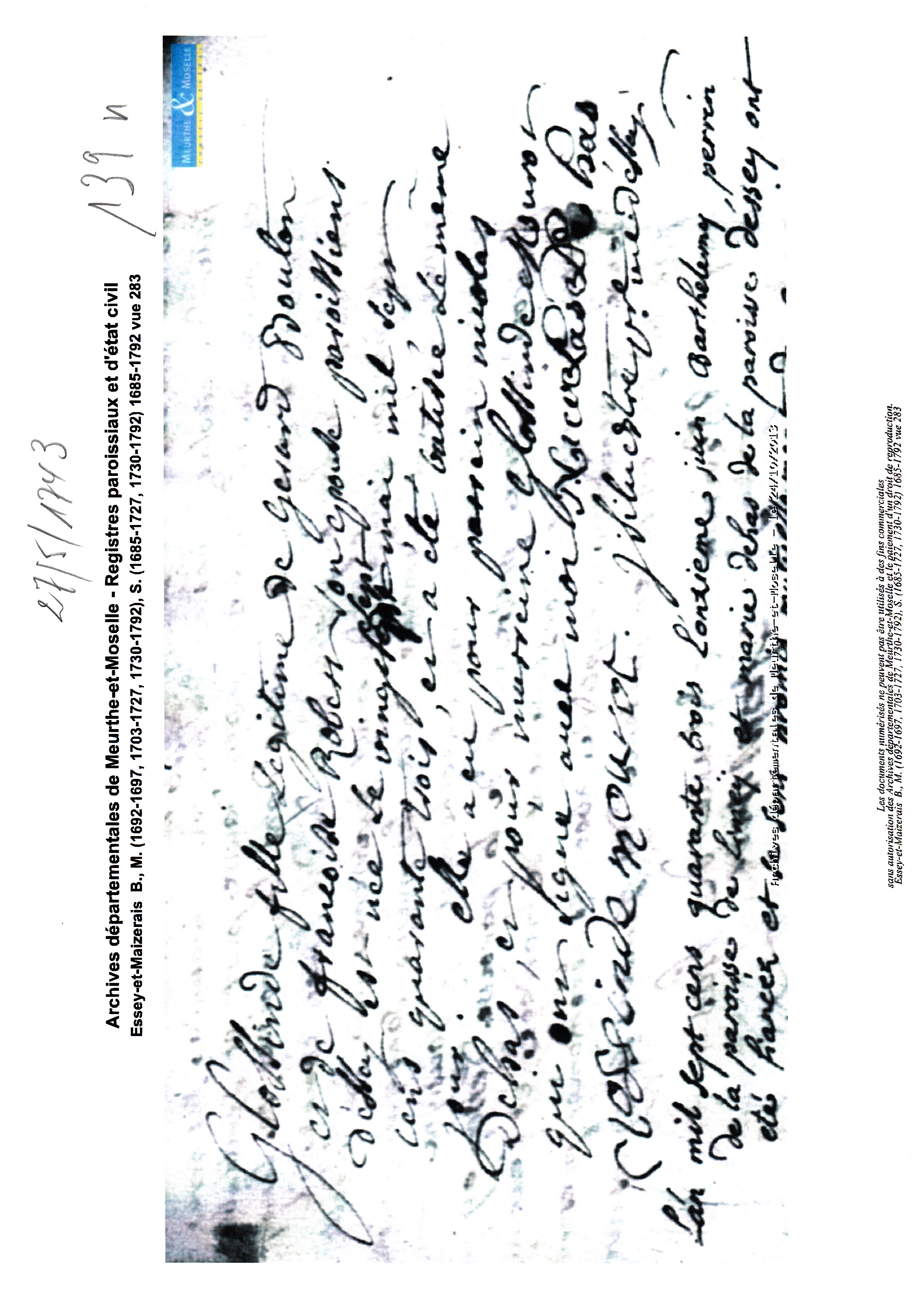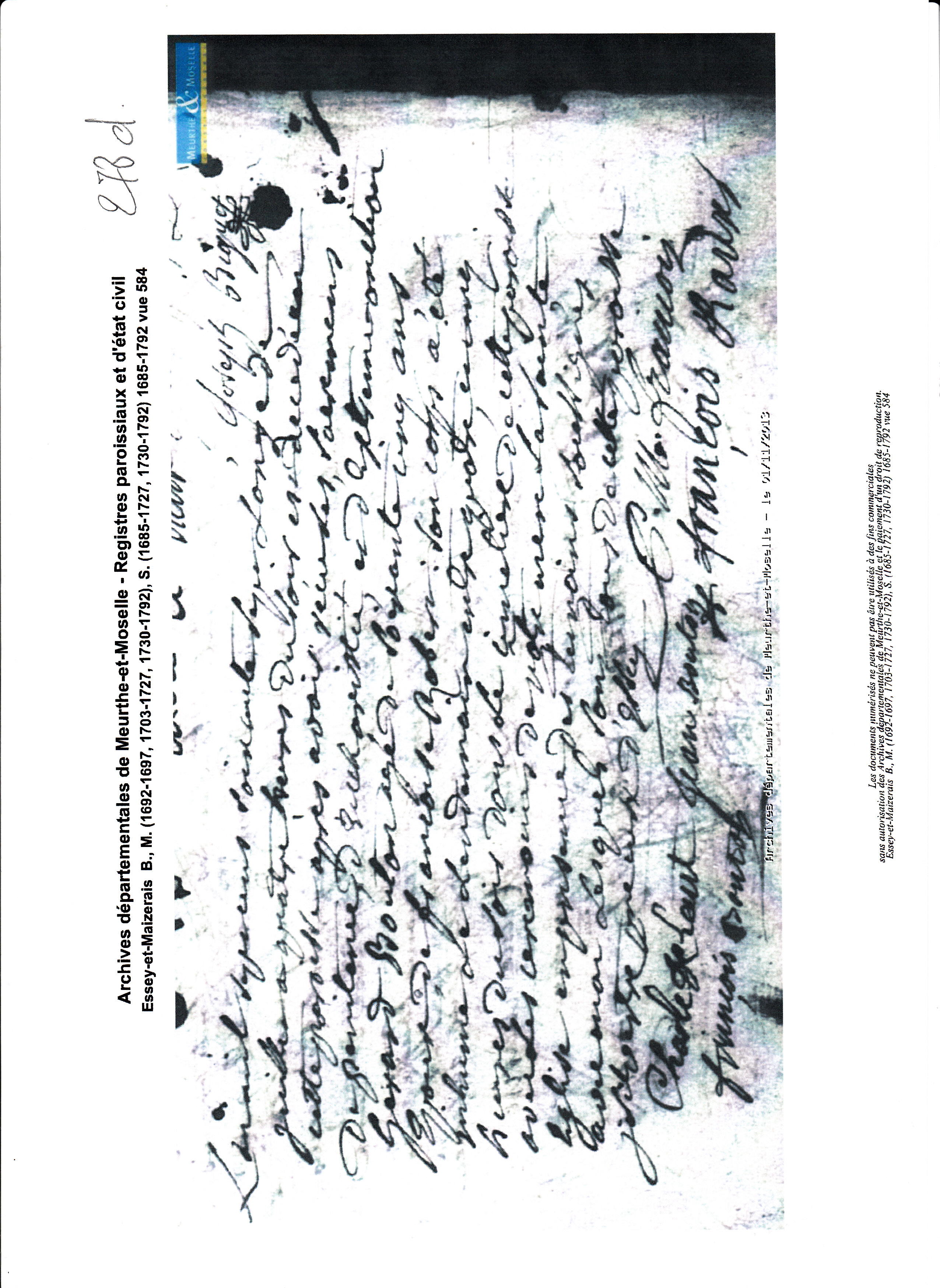 Naissance : vers 1679 à Essey et Maizerais 54470 Décès : 6 août 1758 à Essey et Maizerais 54470 ( Source )