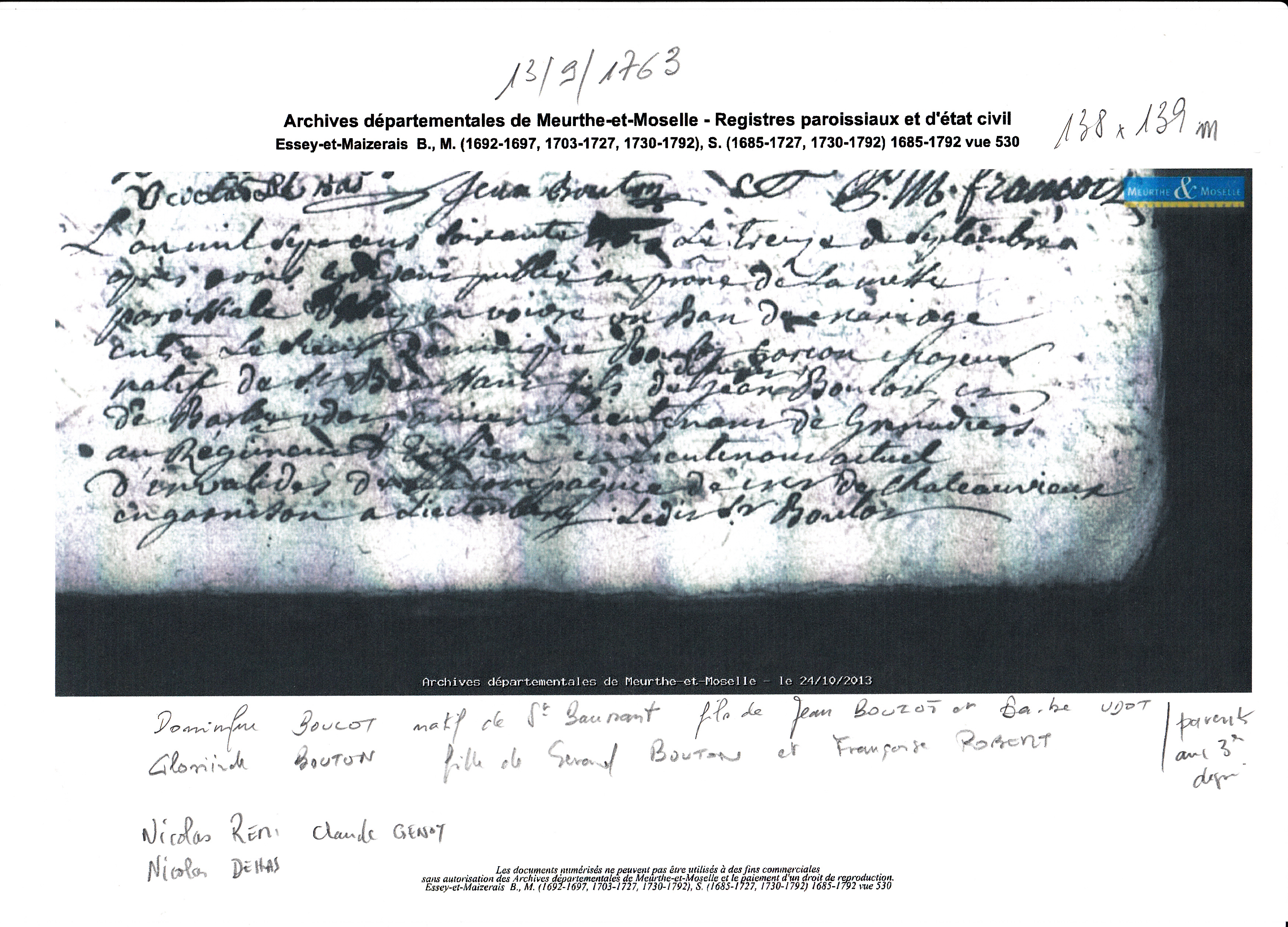 Mariage : 13 septembre 1763 à Essey et Maizerais 54470 ( Source )