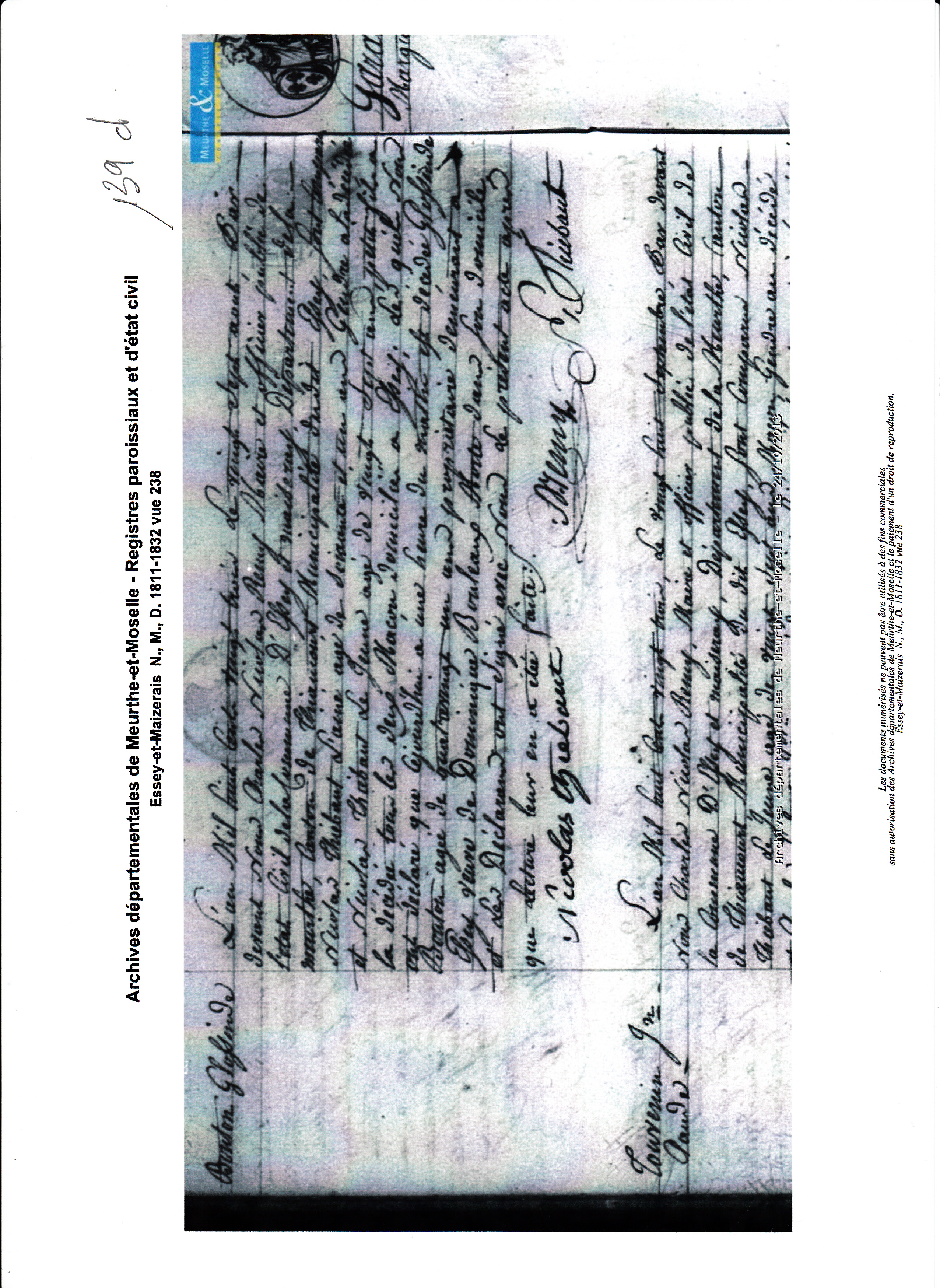 Naissance : 30 mai 1746 à Essey et Maizerais 54470 Décès : 3 mars 1822 à Essey et Maizerais 54470