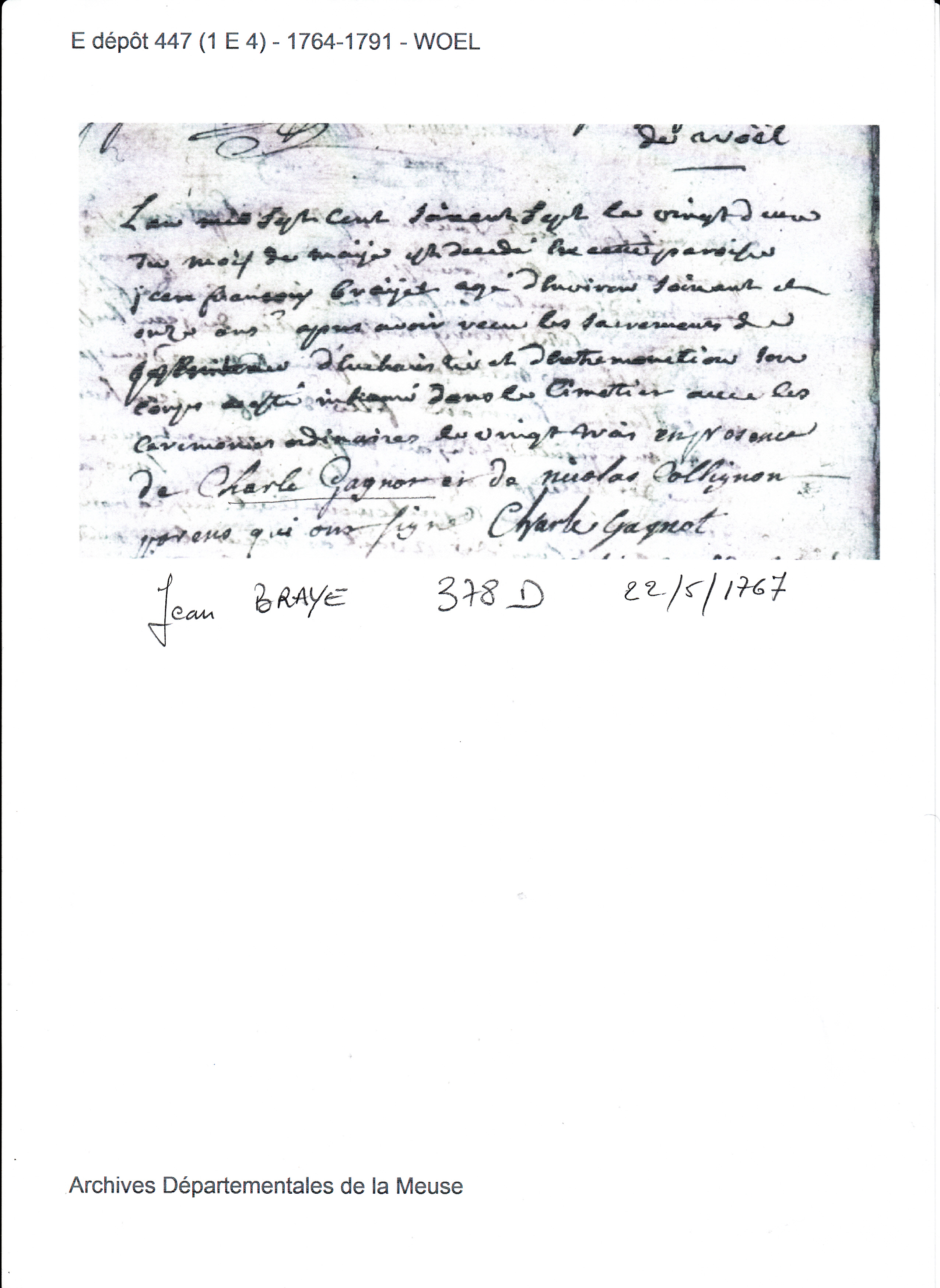 Frère Joseph né en 1702 ...Décès : 22 mai 1767 à Woël 55210 ( Source )