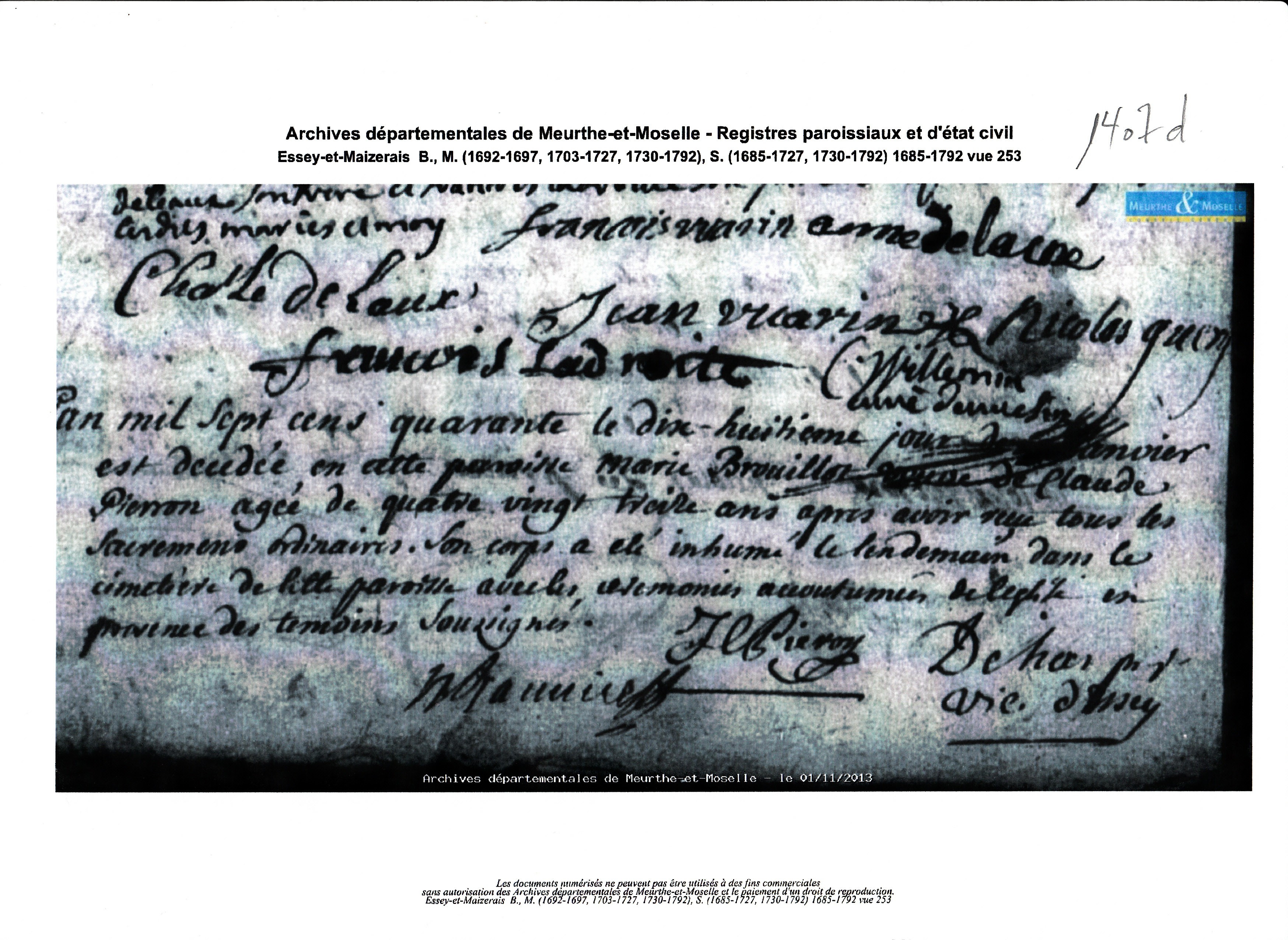 Autre enfant : BROUILLOT Marie ( ~ 1657 - 1740 )