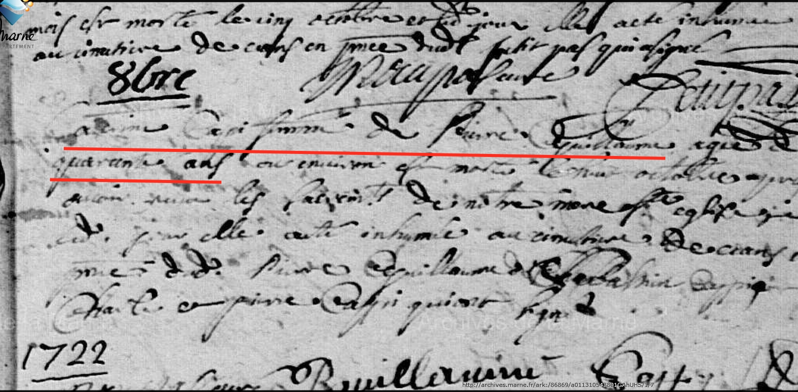 Décès : 8 octobre 1722 à Verrières 51800 ( Source )