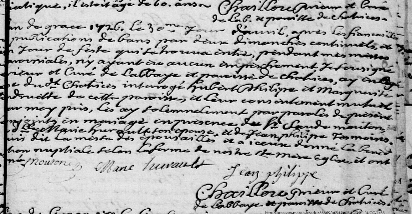 Mariage : 30 avril 1726 à Châtrices 51800 ( Source )