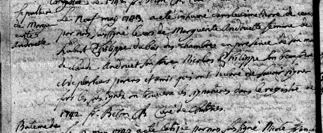 Décès : 9 mai 1743 à Châtrices 51800 ( Source )