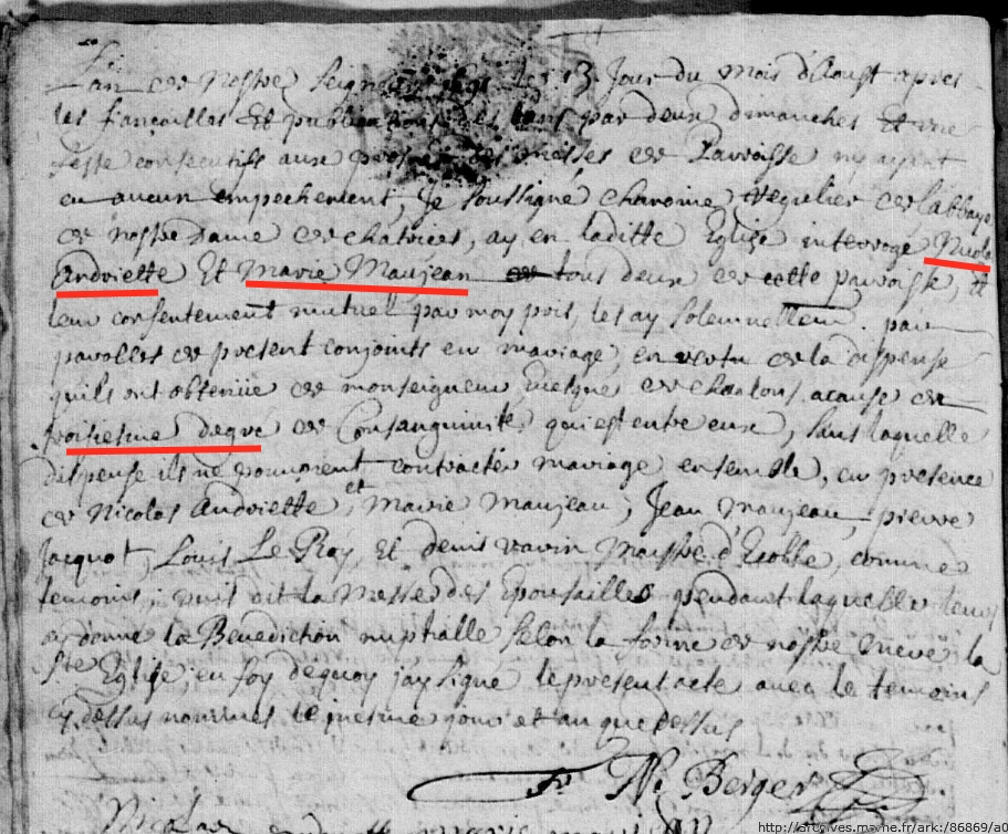 Union : MAUJEAN Marie ( ~ 1675 - 1727 )