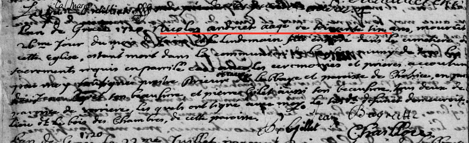 66 ans à son dcDécès : 26 juin 1720 à Châtrices 51800 ( Source )