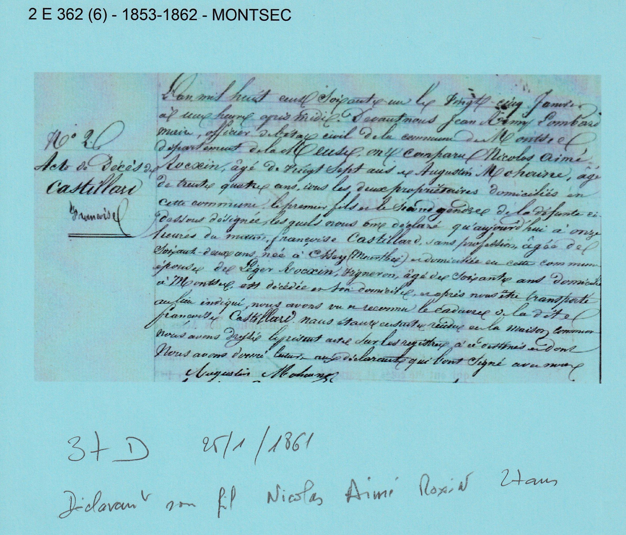 Décès : 25 janvier 1861 à Montsec 55300 ( Source )