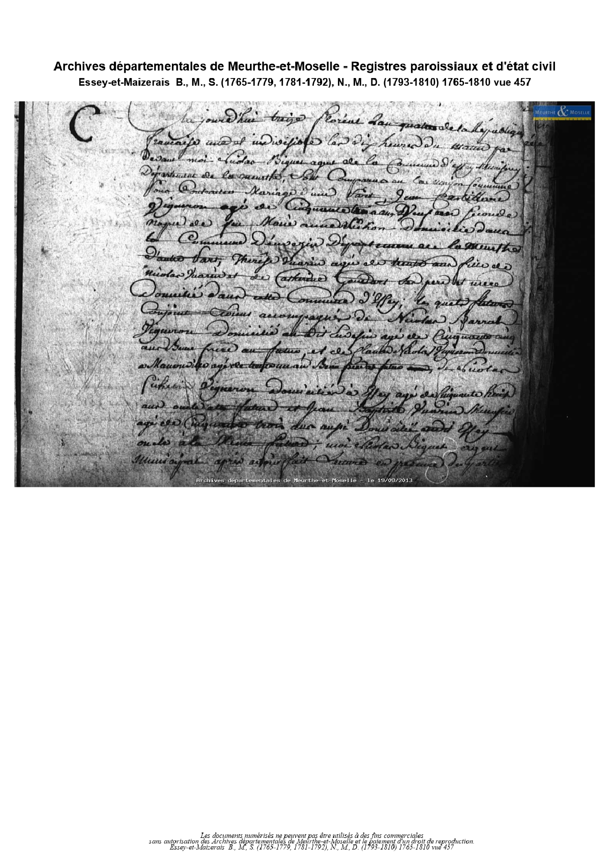Mariage : 2 mai 1796 à Essey et Maizerais 54470 ( Source )