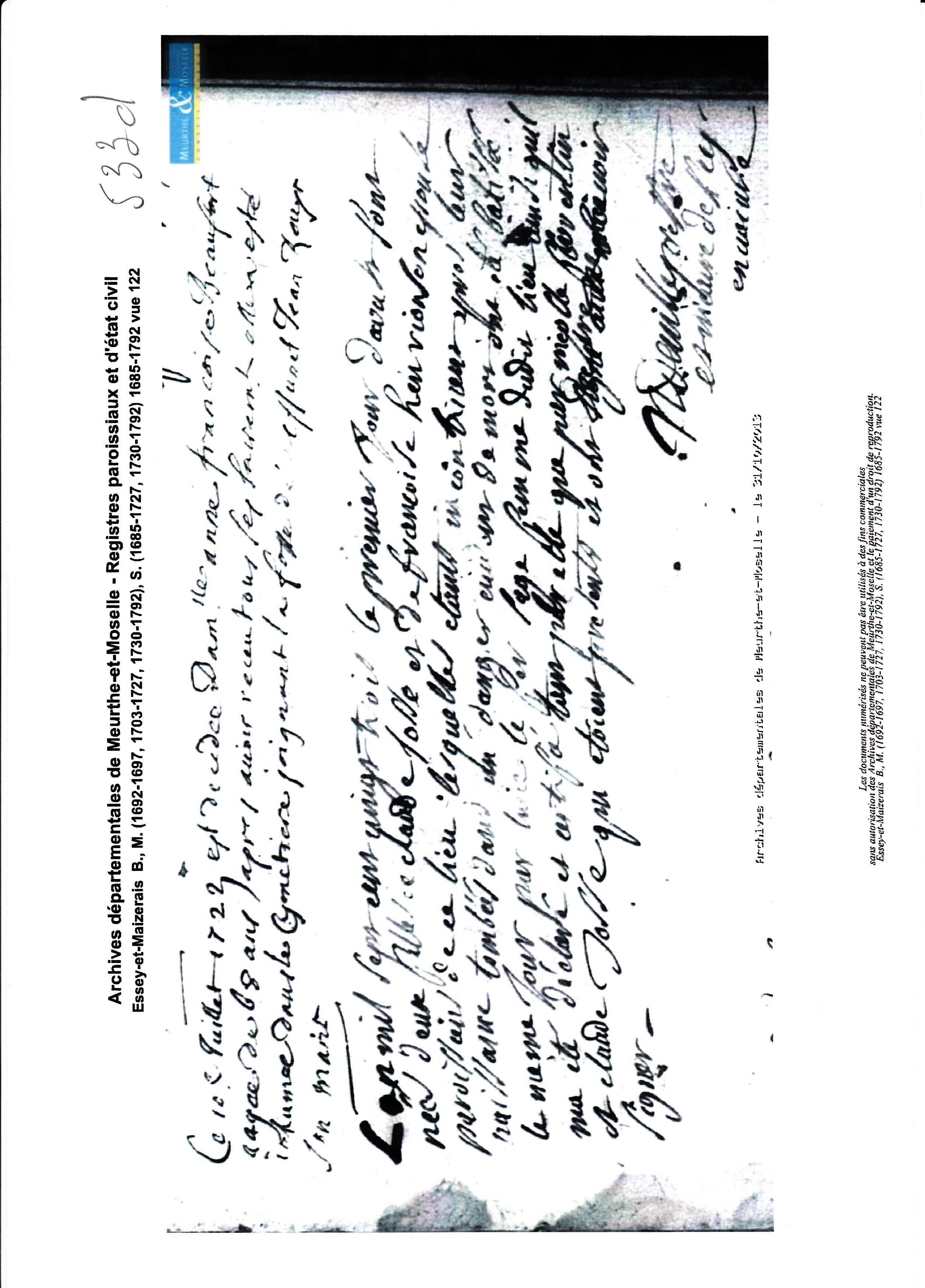 Décès : 17 septembre 1732 à Essey et Maizerais 54470 ( Source )