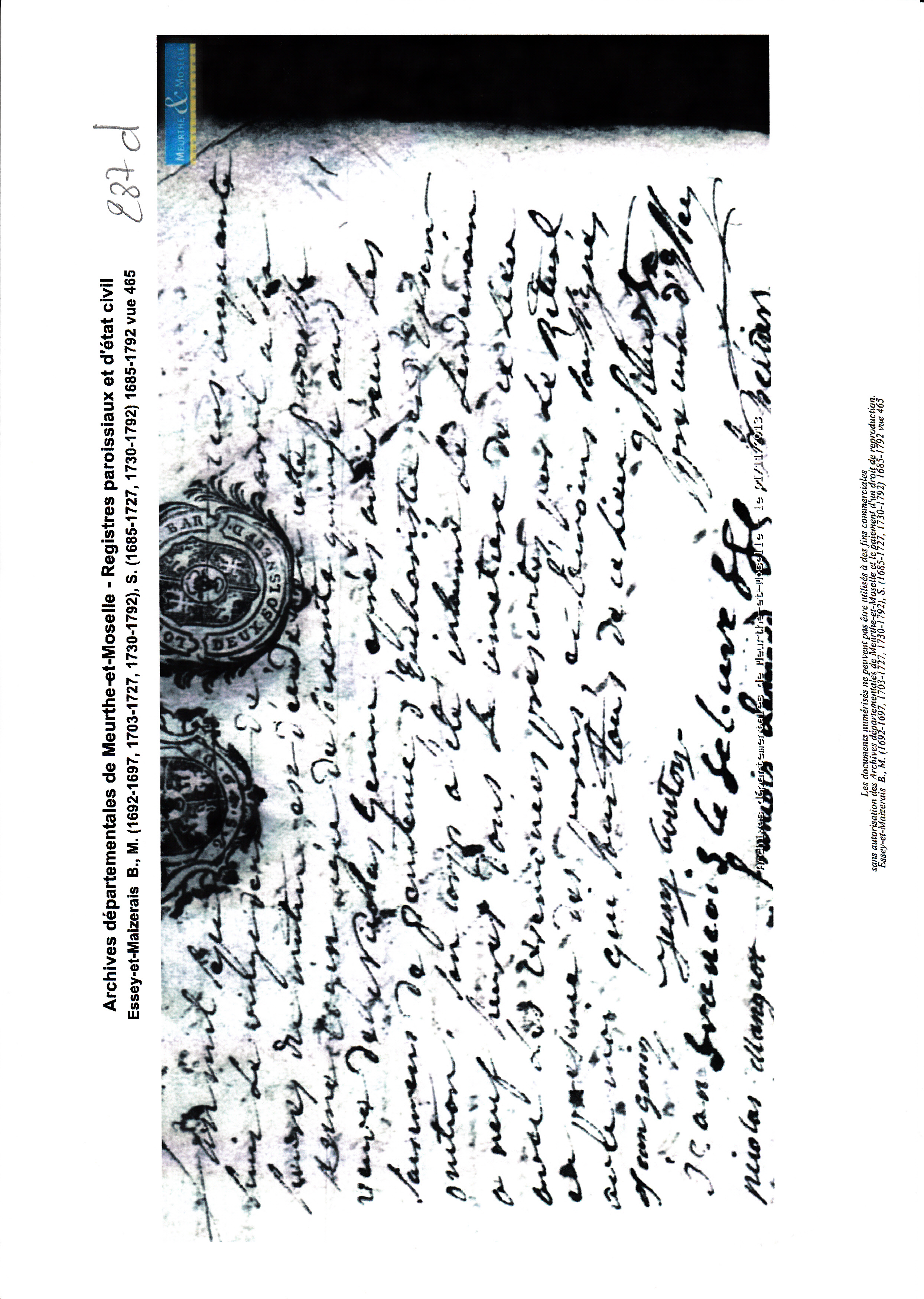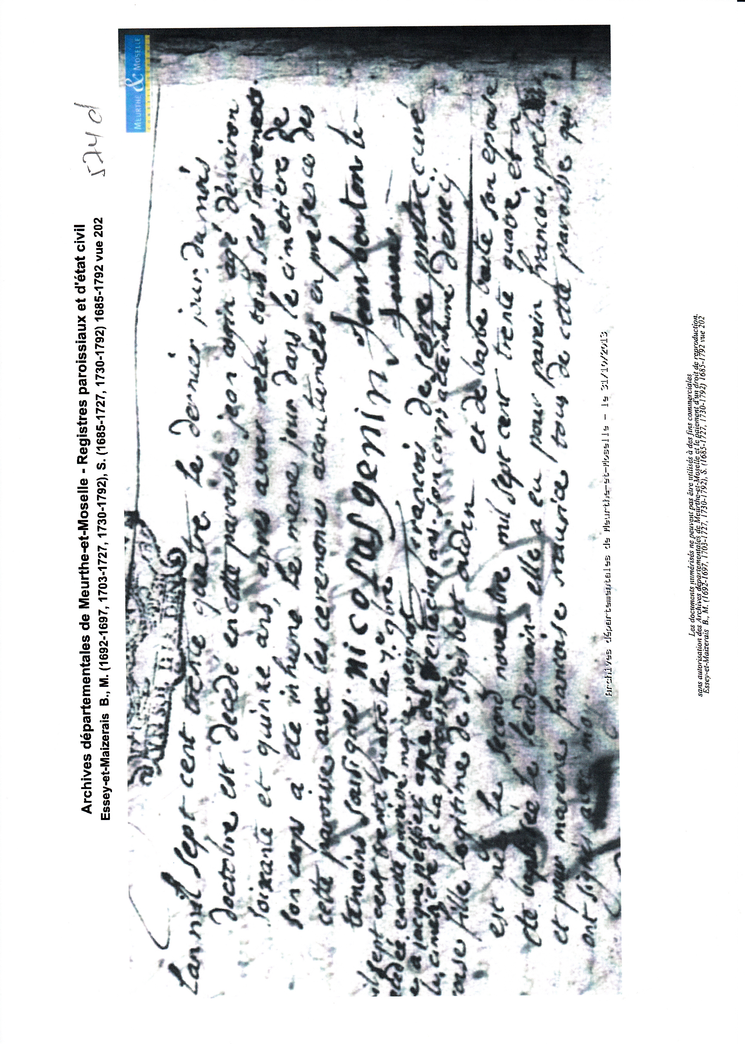 Naissance : vers 1683 à Essey et Maizerais 54470 Décès : 22 avril 1758 à Essey et Maizerais 54470 ( Source )