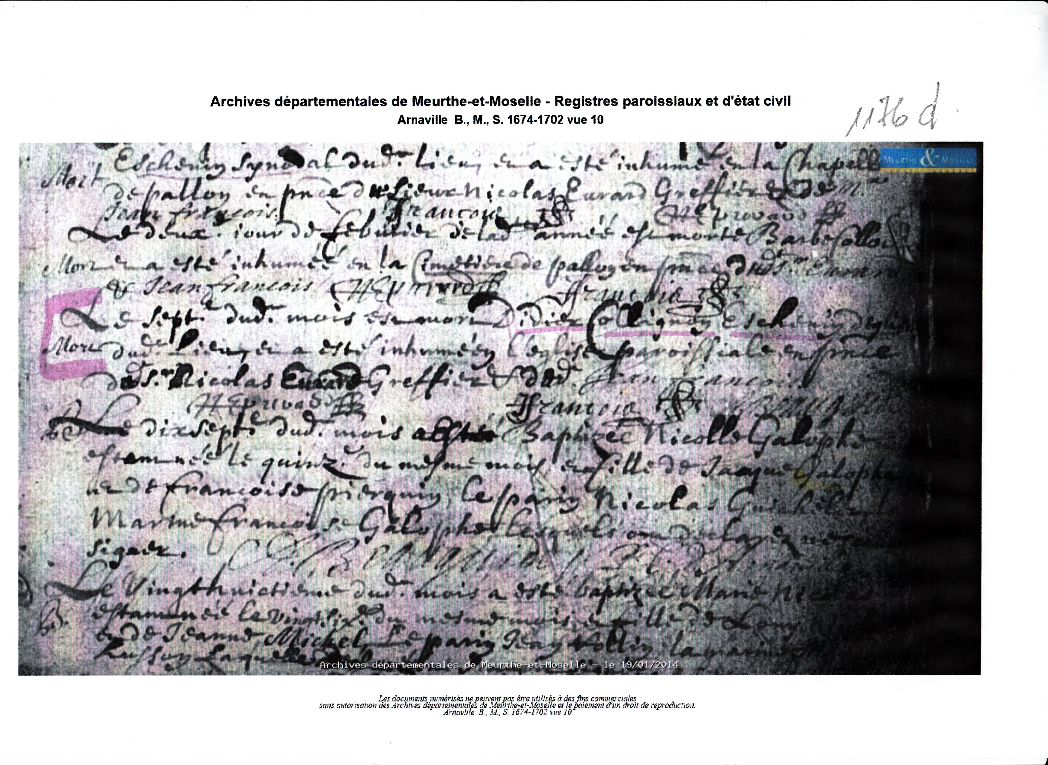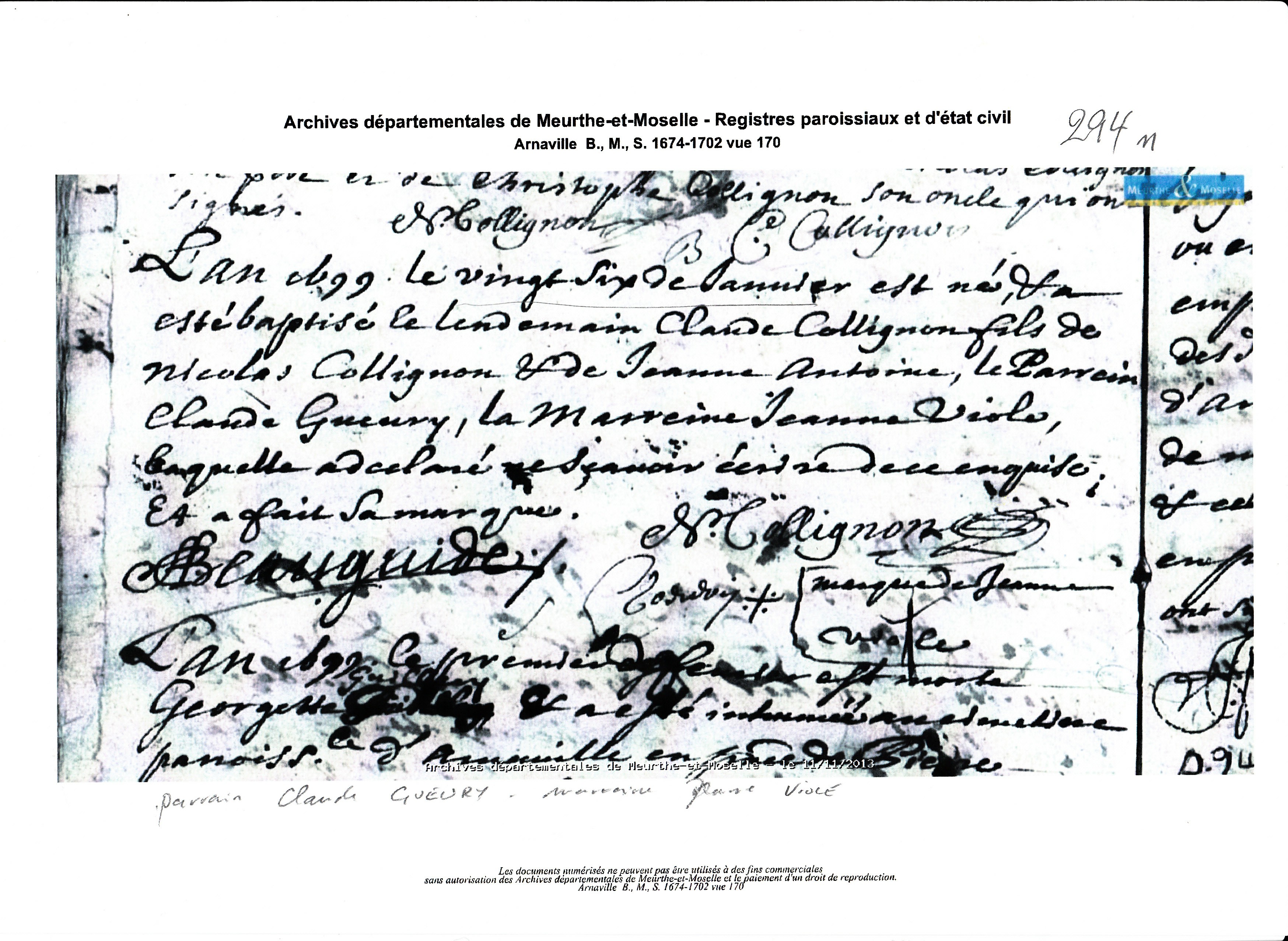 Naissance : vers 1630 à Arnaville 54530 Décès : 7 février 1674 à Arnaville 54530 ( Source )