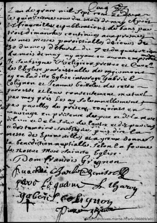 Mariage : 15 mai 1702 à Moiremont 51 ( Source )