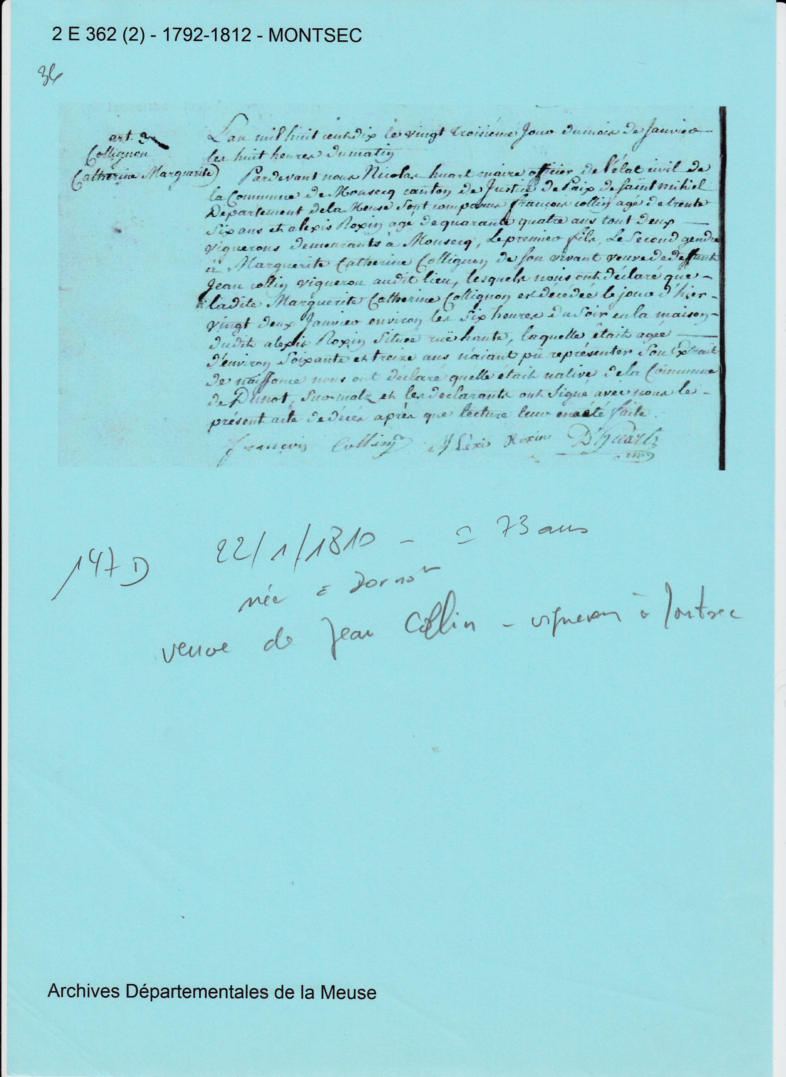 Décès : 22 janvier 1810 à Montsec 55300 ( Source )